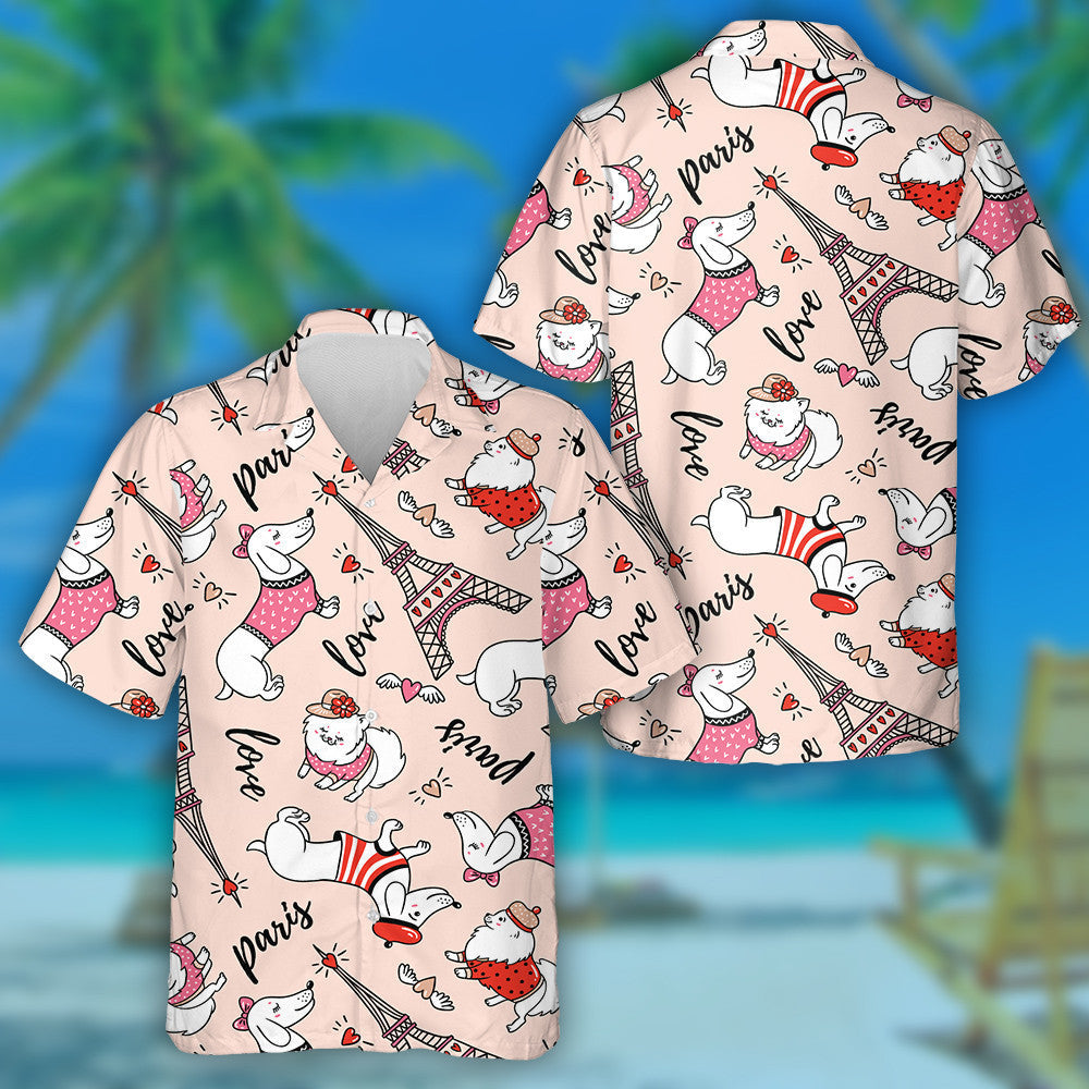 Madra Stíl na Fraince ar Chúlra Bándearg Léine Haváís, Bronntanas Léine Haváí, Bronntanas Nollag