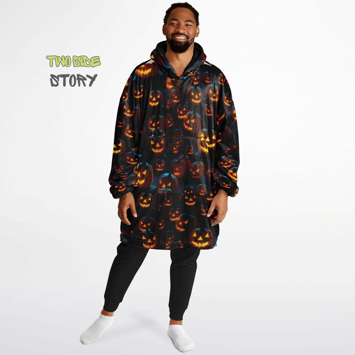Fun Halloween Glowing Pumpkin Snug Hoodie,Printed Hooded Blanket,Blanket Sleeves,Lounge Wear,Novelty Birthday Christmas Gifts for Him or Her