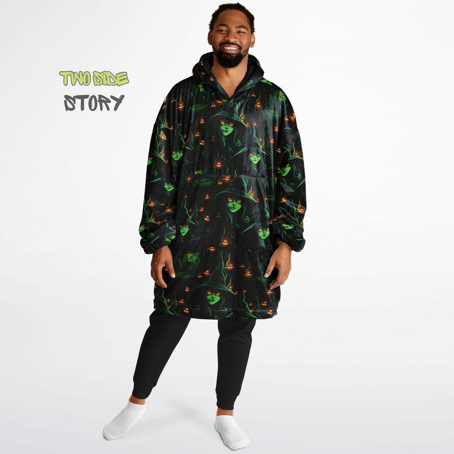 Fun Halloween Glowing Which Snug Hoodie,Printed Hooded Blanket,Blanket Sleeves,Lounge Wear,Novelty Birthday Christmas Gifts for Him or Her
