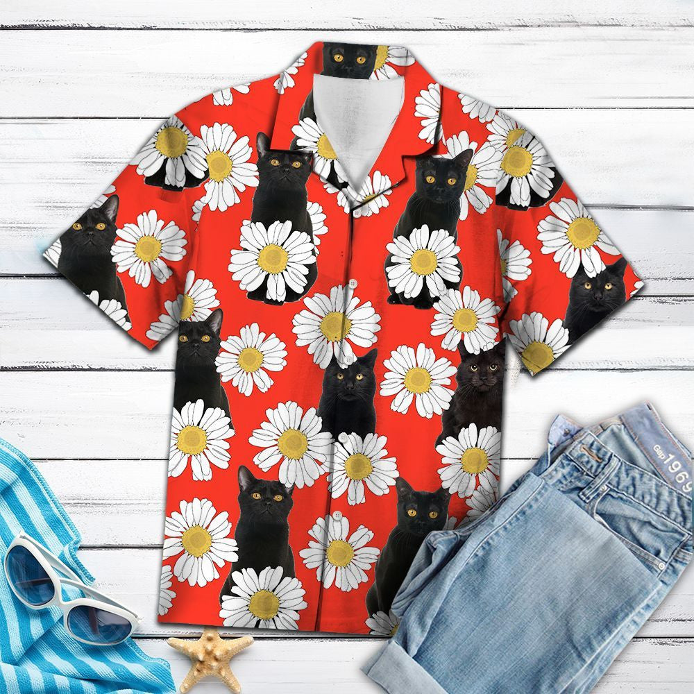 Greannmhar Cat Dubh Nóinín Laethanta Saoire an tSamhraidh Patrún Dearg Léine Haváís, Bronntanas Léine Haváís, Bronntanas Nollag