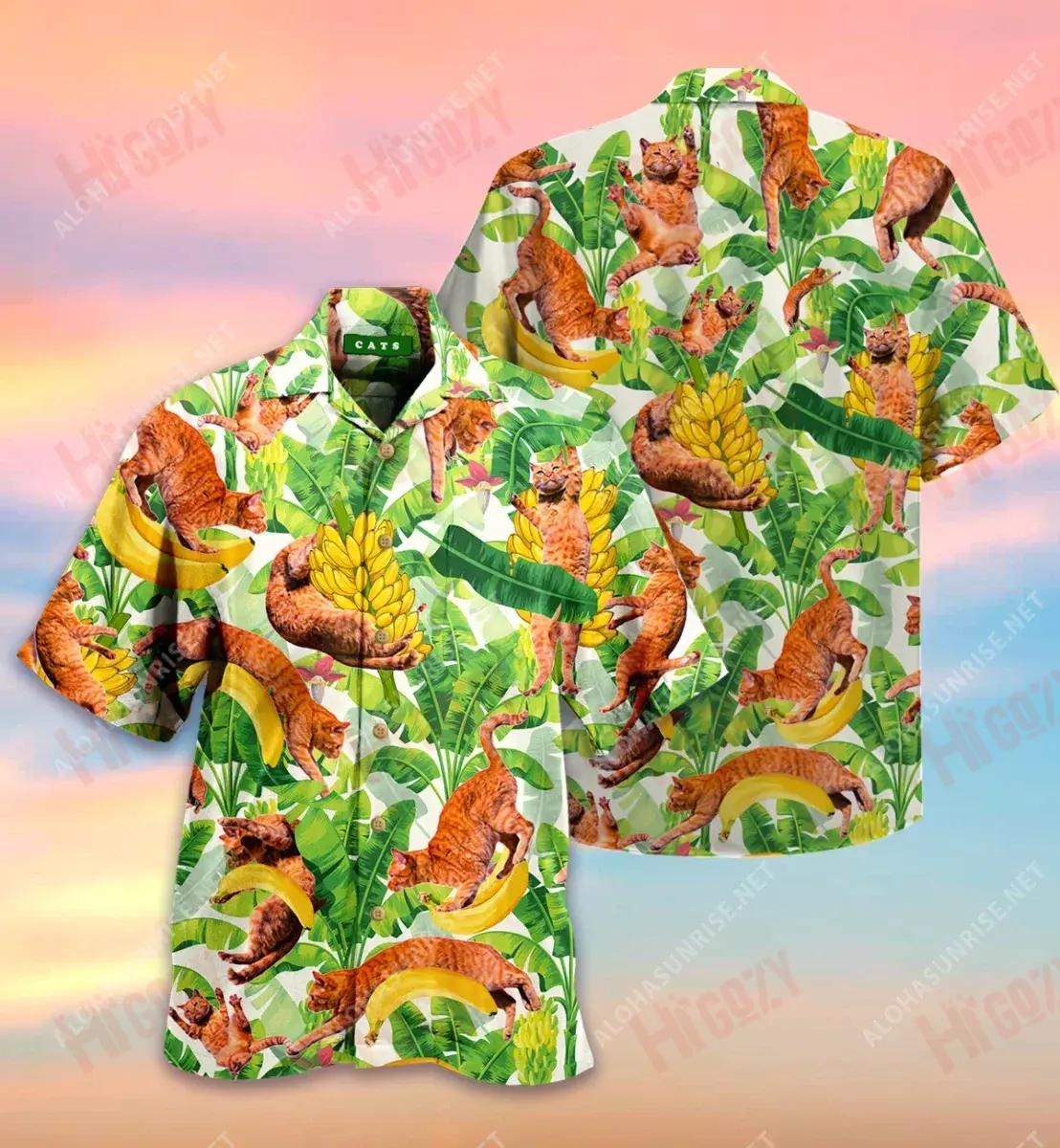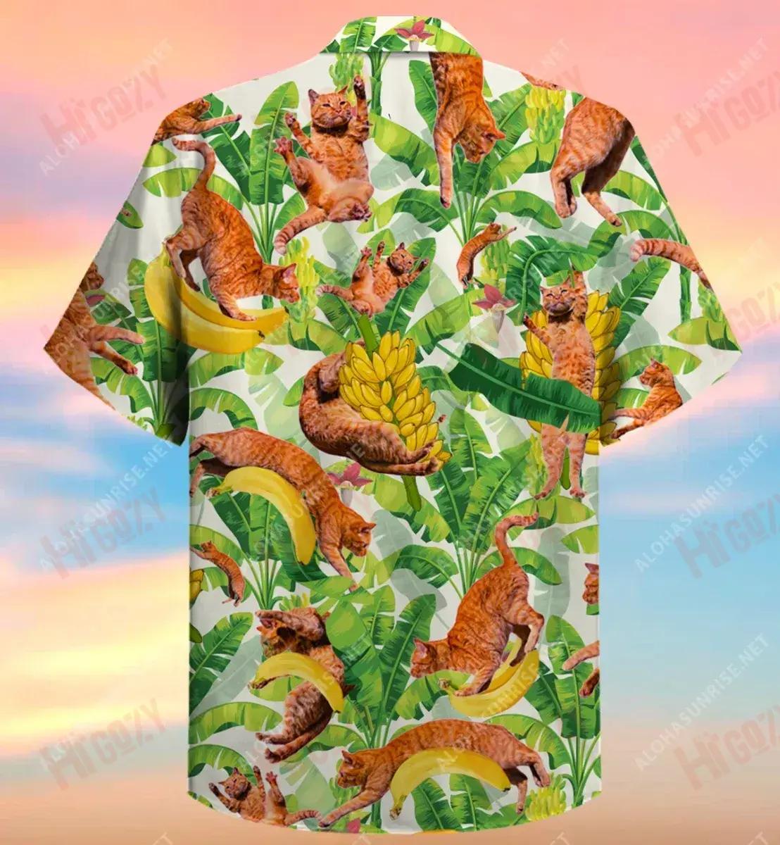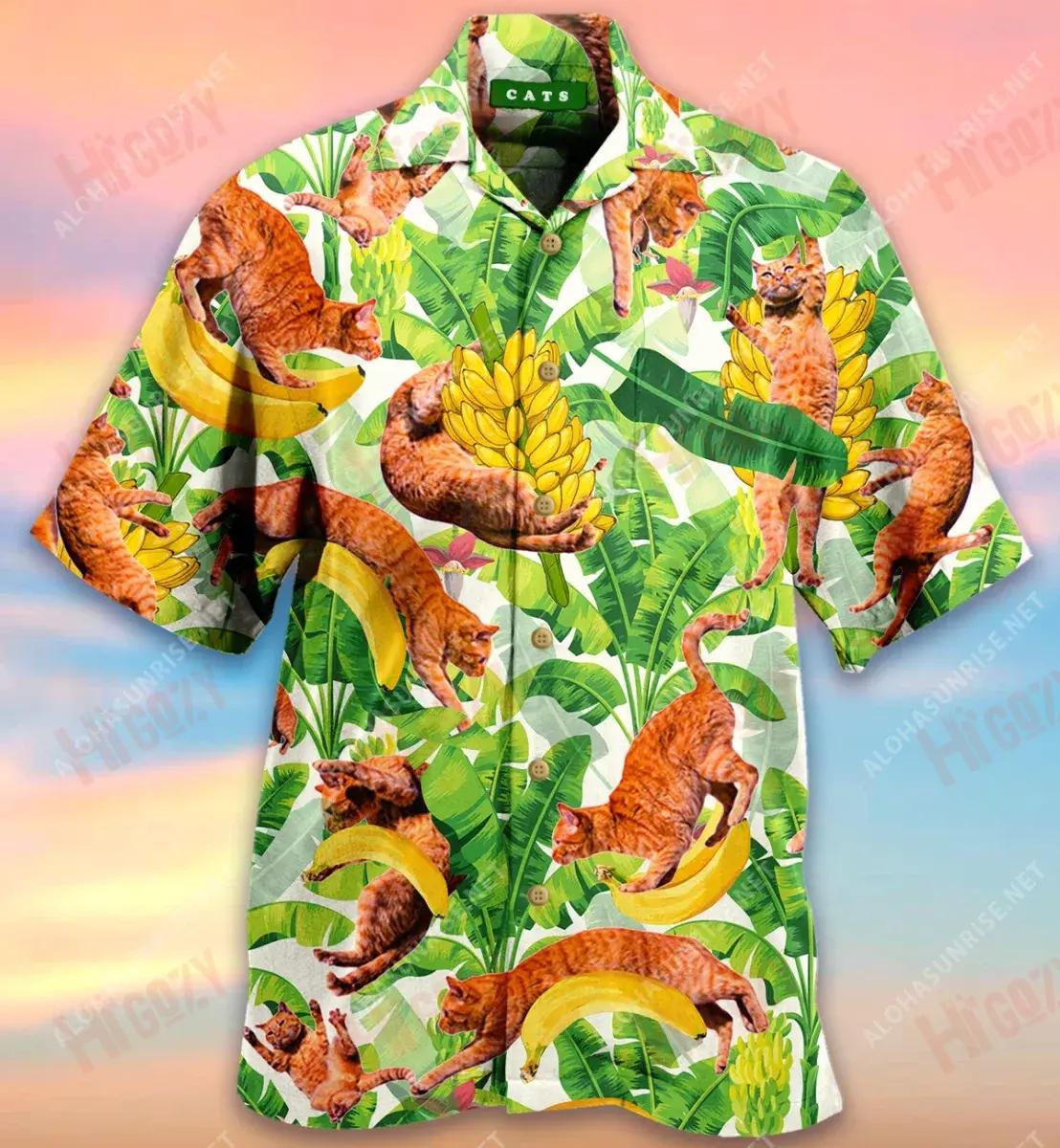 Cait Greannmhar Agus Bananaí Léim Léine Gearr Haváís Laethanta Saoire Léinte Tropacha Léine Oirbheartaíochta Haváí Patrún Léine Haváíais, Bronntanas Léine Haváís, Bronntanas Nollag