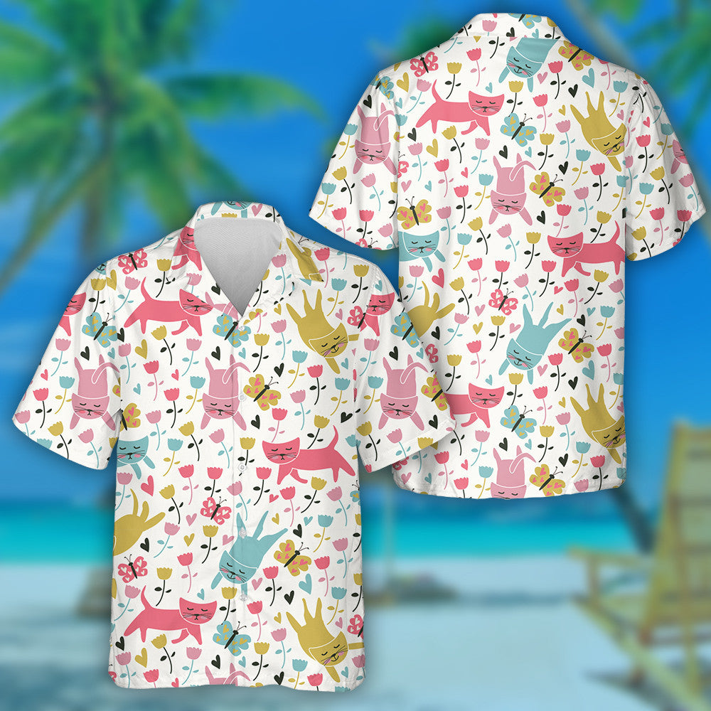 Cait Greannmhar Bláthanna Agus Féileacáin I Stíl Chartúin Léine Haváís, Bronntanas Léine Haváís, Bronntanas Nollag
