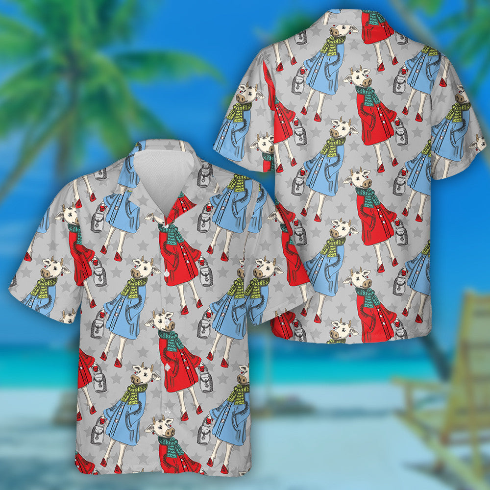 Bó Greannmhar Cóirithe Le Cóta Scarf Agus Mála Léine Haváí, Bronntanas Léine Haváís, Bronntanas Nollag