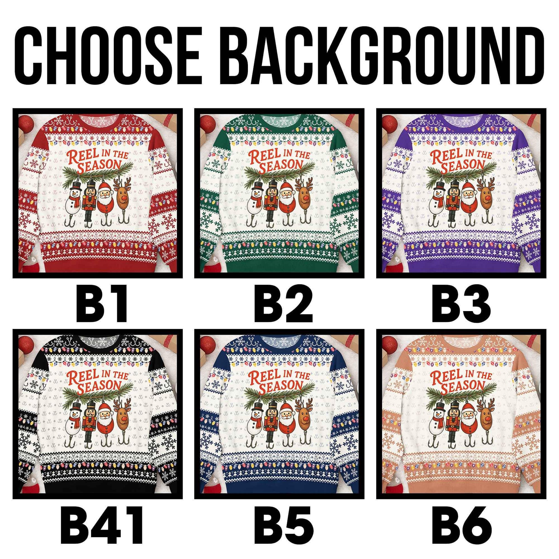 Funny Fishing Ugly Christmas Sweater, Reel in The Season Holiday Sweatshirt, Fisherman Xmas Jumper, Novelty Holiday Party Outfit