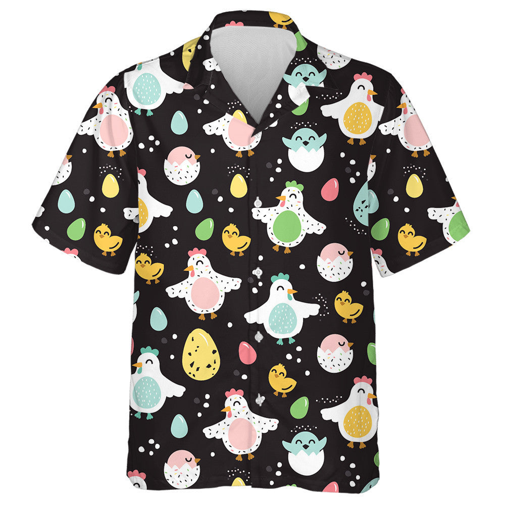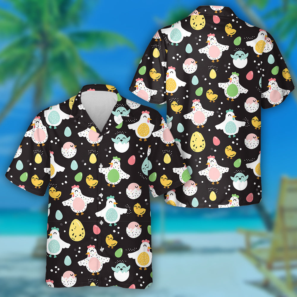 Cearca Greannmhar Uibheacha Agus Sicíní ar Chúlra Dubh Léine Haváís, Bronntanas Léine Haváíais, Bronntanas Nollag