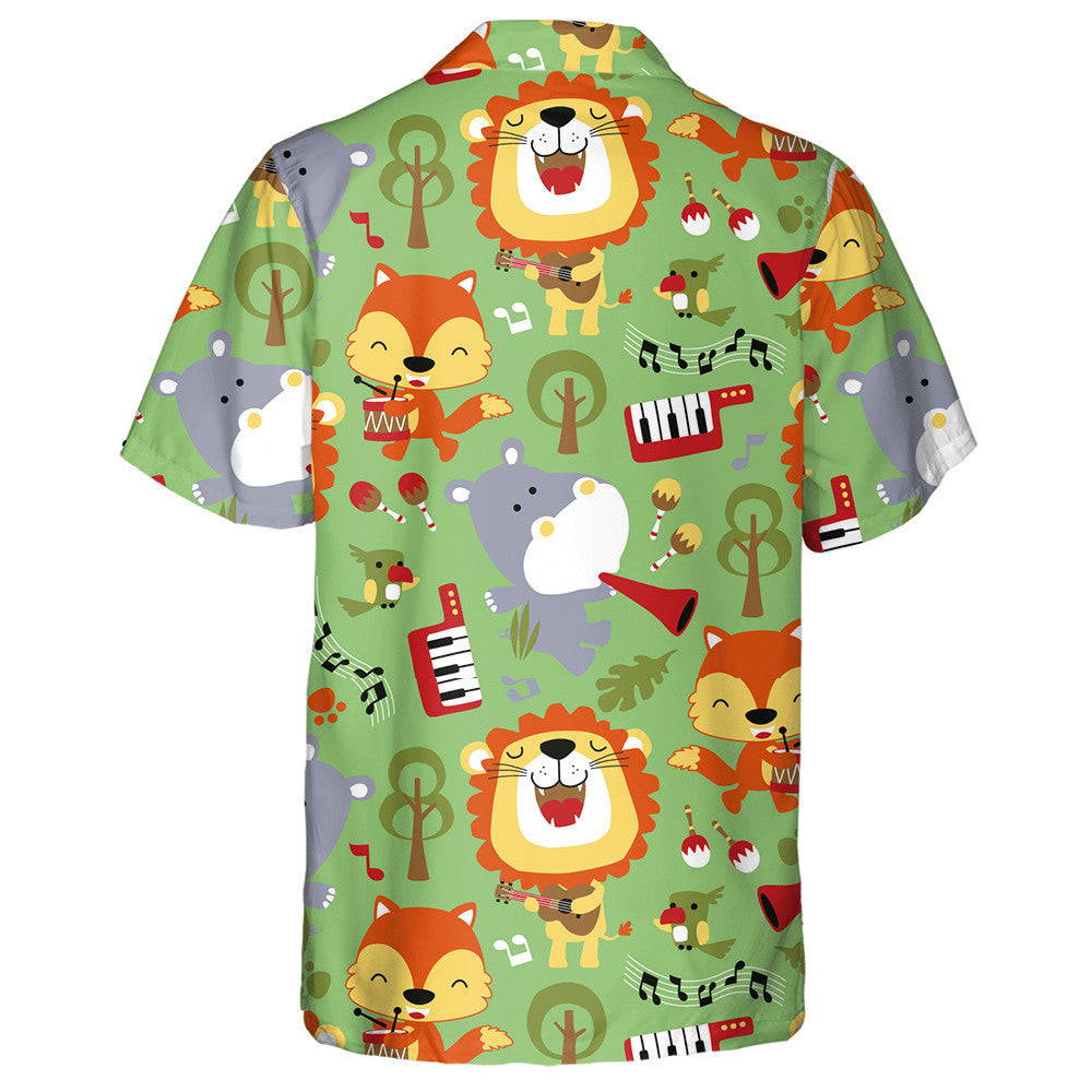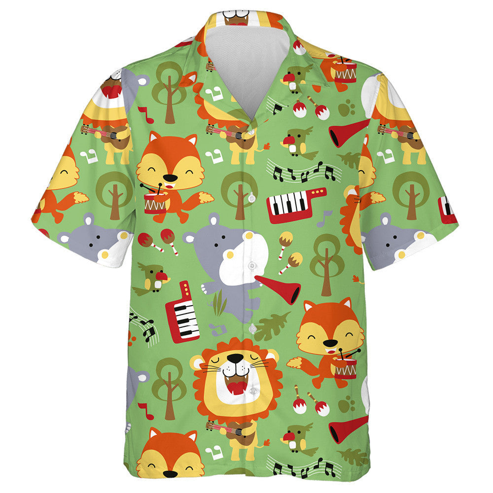 Greannmhar Lion Dobhareach Agus Sionnach Ag Seinn Uirlisí Ceoil Léine Haváís, Bronntanas Léine Haváís, Bronntanas Nollag