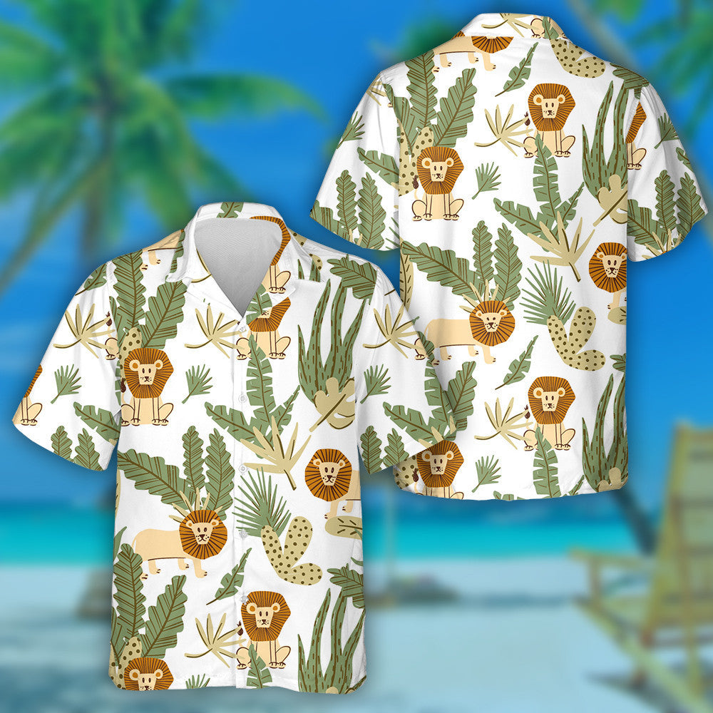 Lion Greannmhar I Léine Haváí Tropical Jungle, Bronntanas Léine Haváise, Bronntanas Nollag