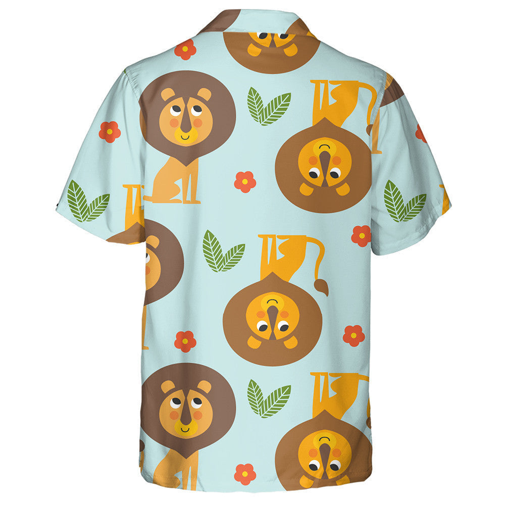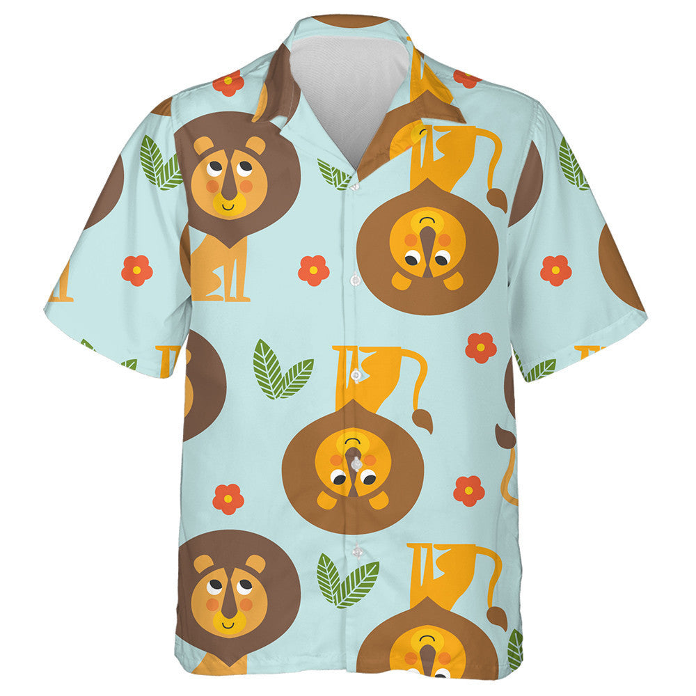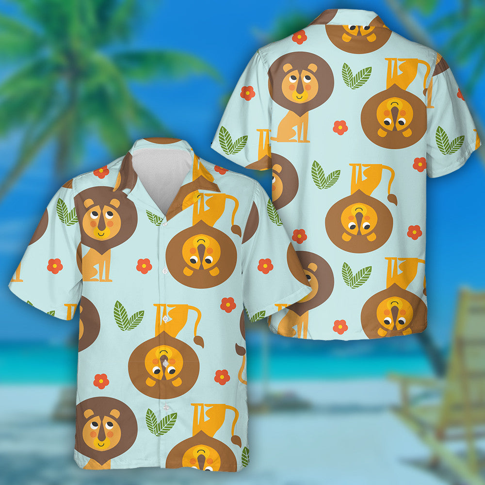 Duilleoga agus Bláthanna Greannmhar Lions Ar Chúlra Gorm Léine Haváís, Bronntanas Léine Haváís, Bronntanas Nollag