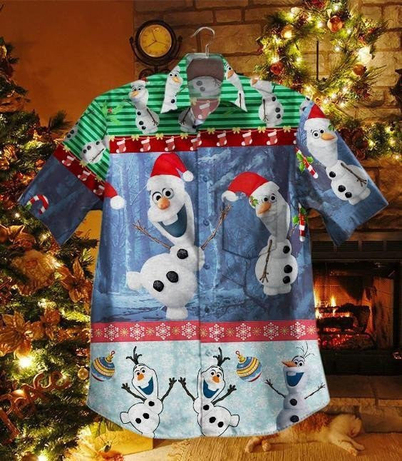 Cúlra Foraoise na Nollag Greannmhar Olaf Dearaidh Vintage Léine Haváís, Léine Haváís, Bronntanas Nollag