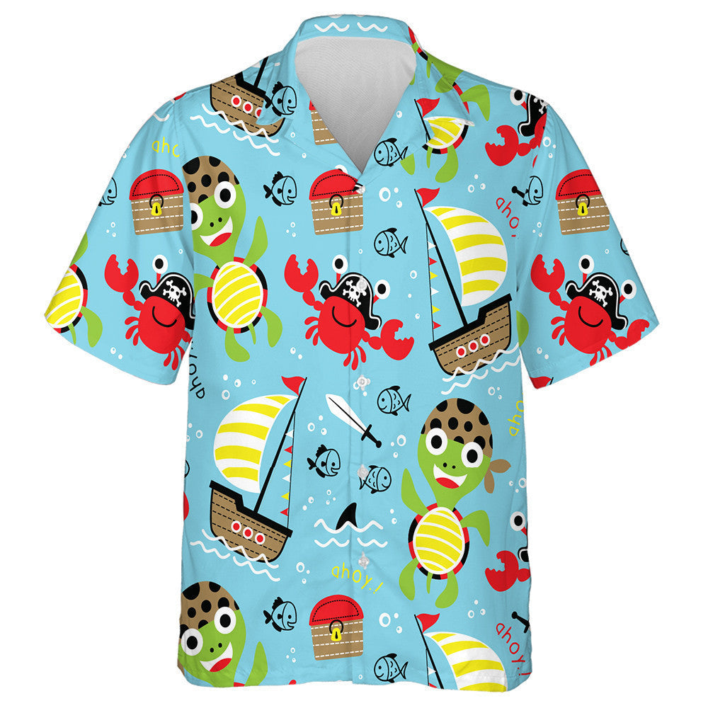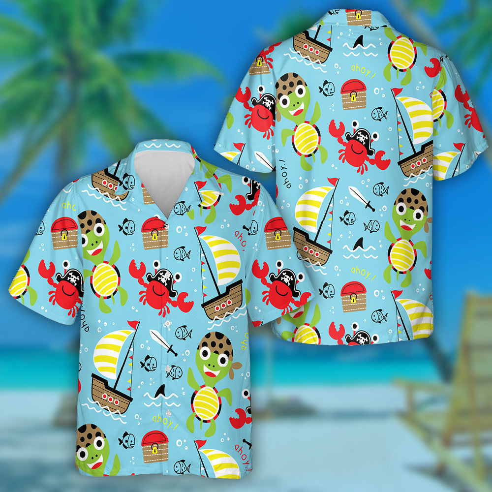 Turtar Cartúin Greannmhar Pirate Le Léine Haváí an Phortáin, Bronntanas Léine Haváí, Bronntanas Nollag