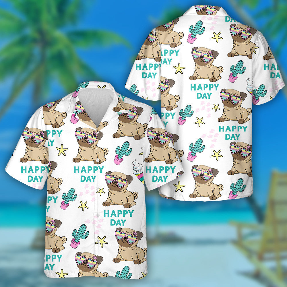 Pug Greannmhar i Gloiní Agus an Inscríbhinn Lá Haváí Shona Léine, Bronntanas Léine Haváíais, Bronntanas Nollag