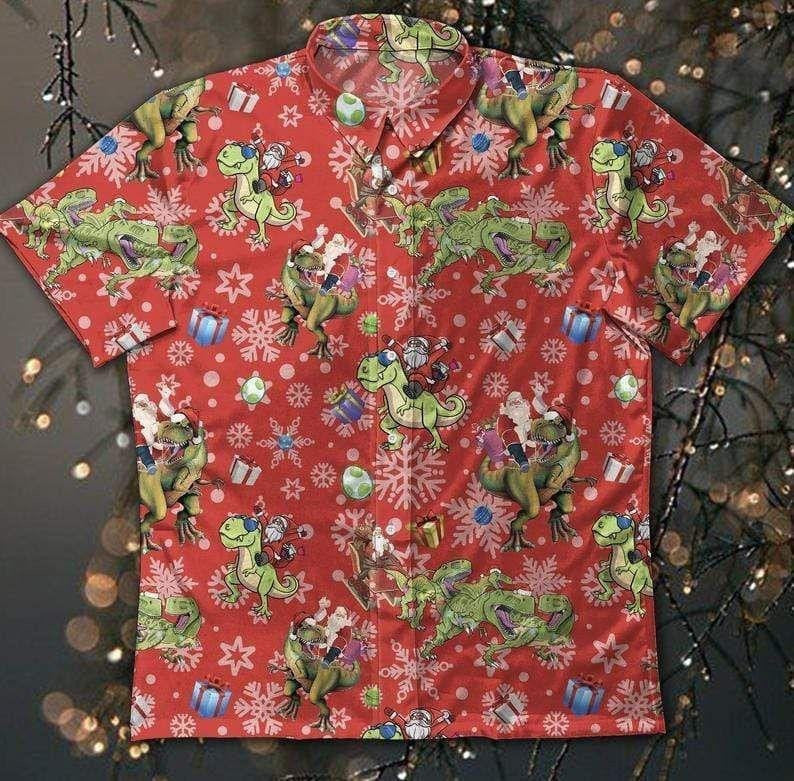 Greannmhar Santa Claws Dineasár Cúlra Dearg na Nollag Léine Haváís, Bronntanas Léine Haváís, Bronntanas Nollag