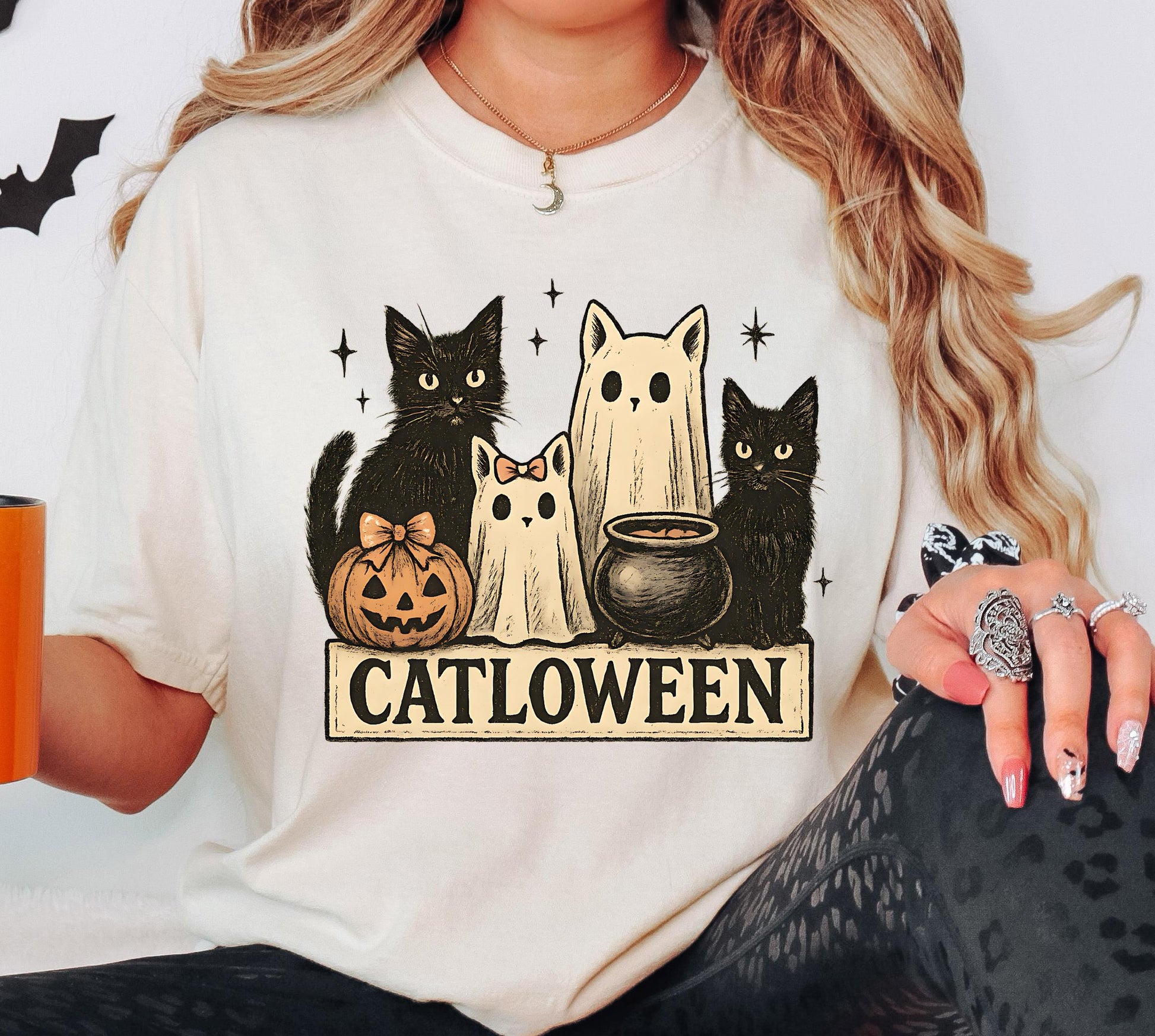 Ghost Cat Shirt, Cat Halloween Shirt, Spooky Black Cat Halloween Sweatshirt, Halloween For Pumpkin Gift, Cat Lover Halloween Tee