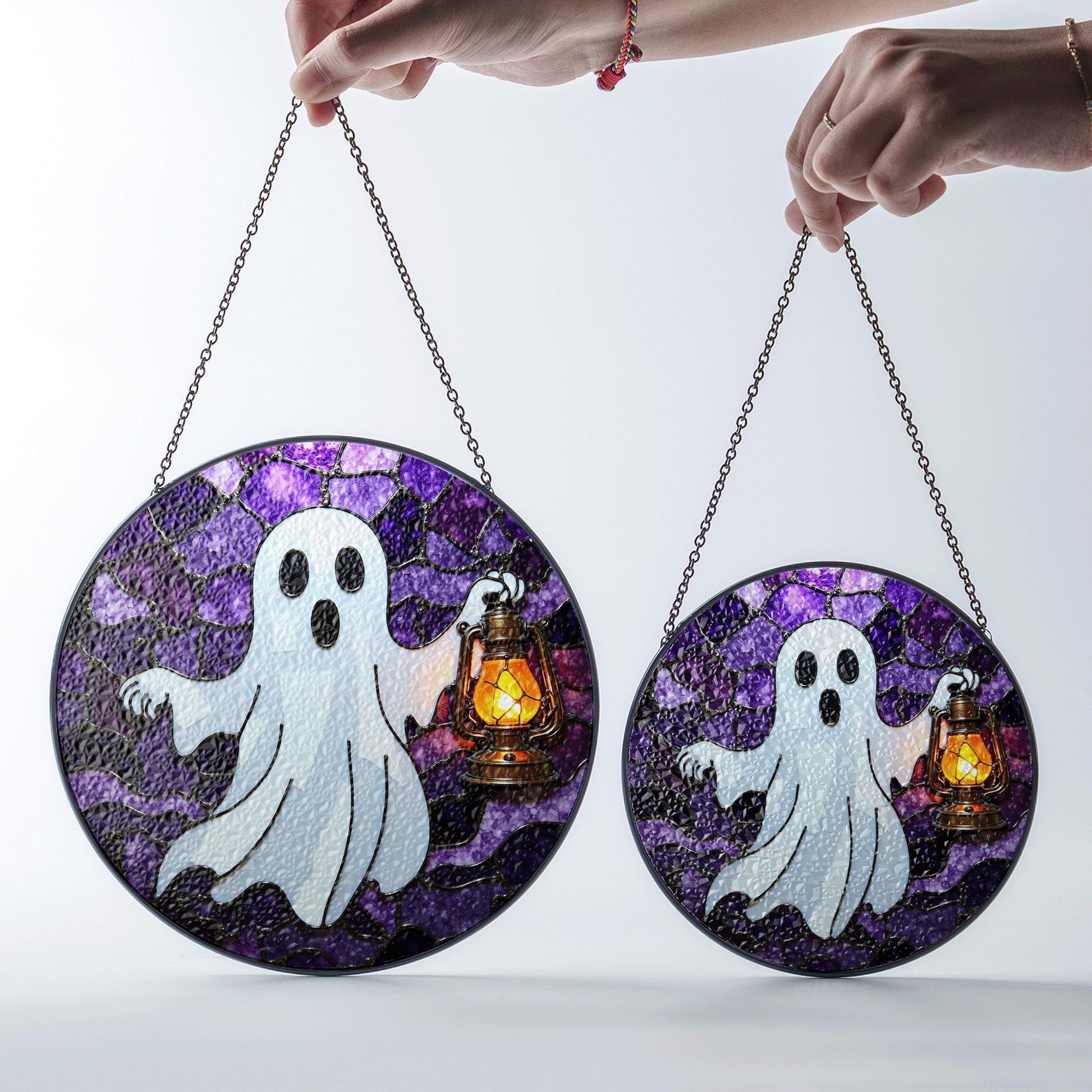 Ghost Lantern Stained Glass Suncatcher Halloween Decor Gift for Spooky Lovers