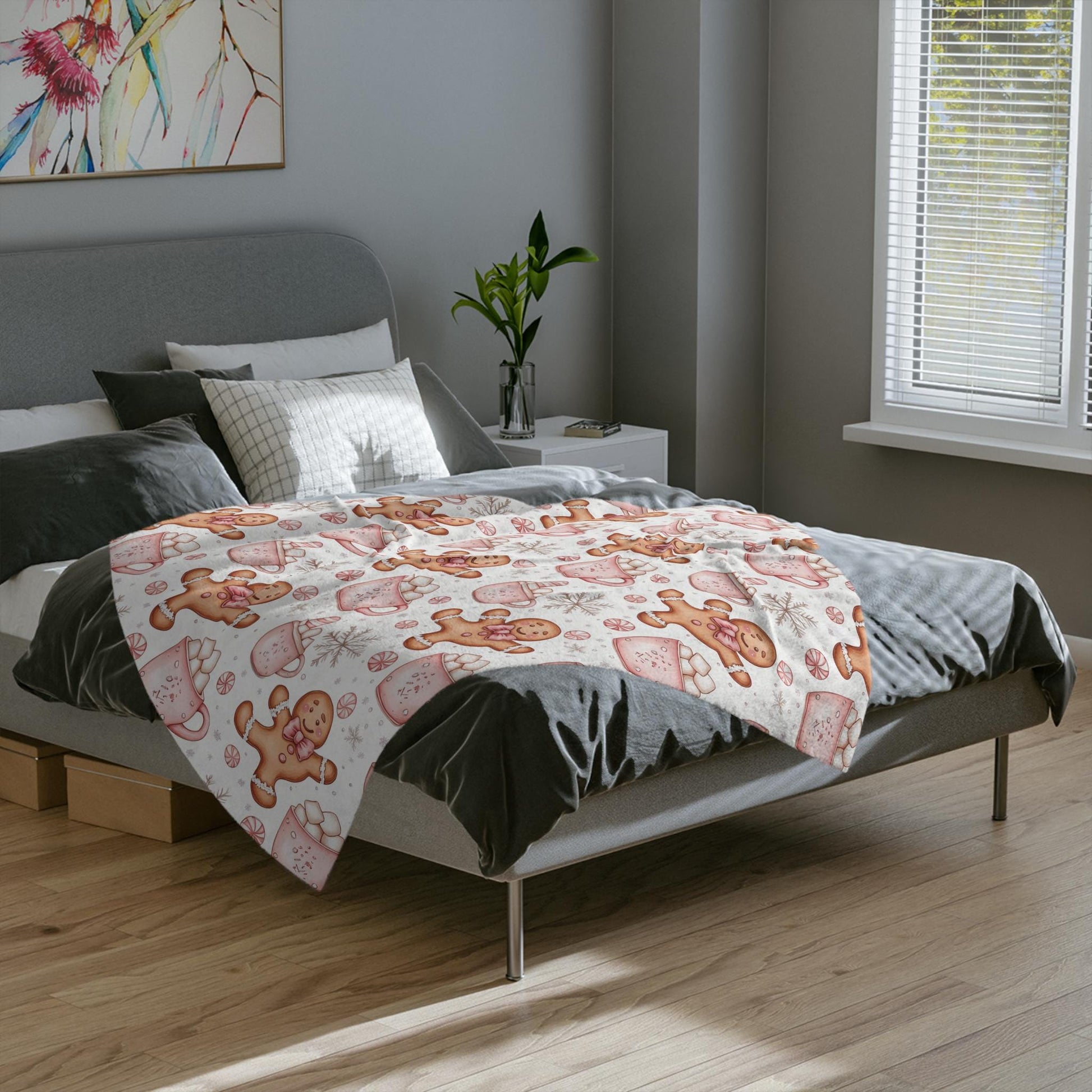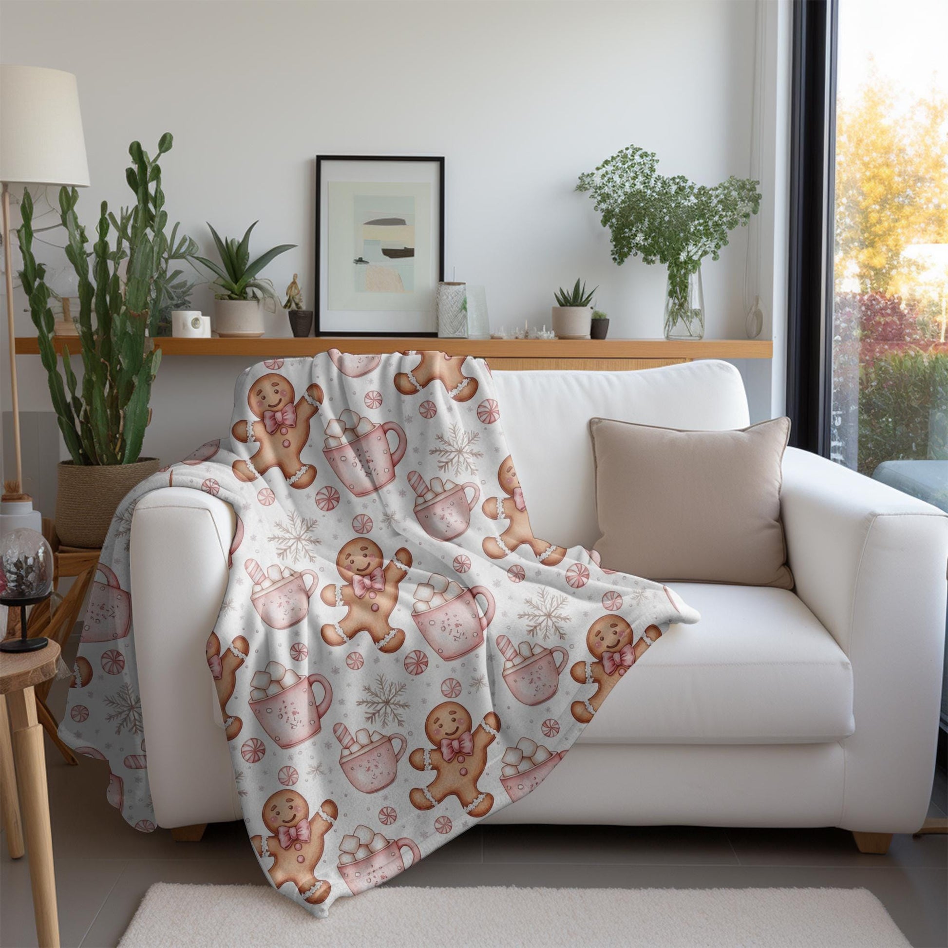 Gingerbread Man Blanket Christmas Coquette Bow Gingerbread Fleece Throw Pink Holiday Home Decor Hot Cocoa Christmas Gift for Family Friends