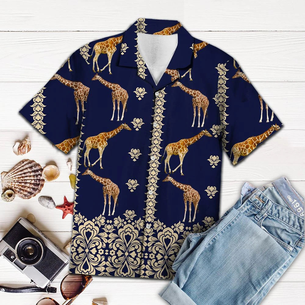 Sioráf le Ealaín Siombalach I Léine Deep Blue Haváís, Bronntanas Léine Haváíais, Bronntanas Nollag