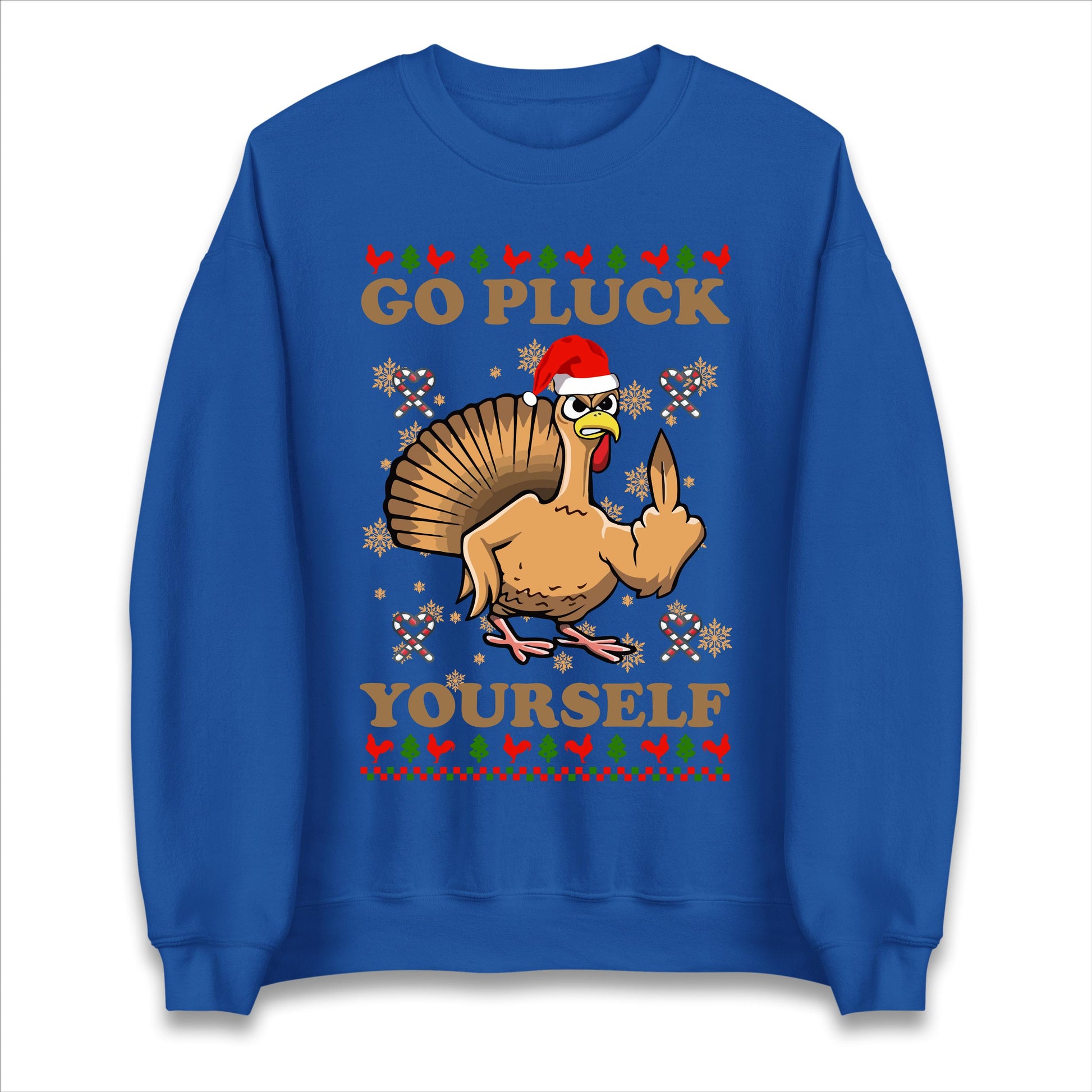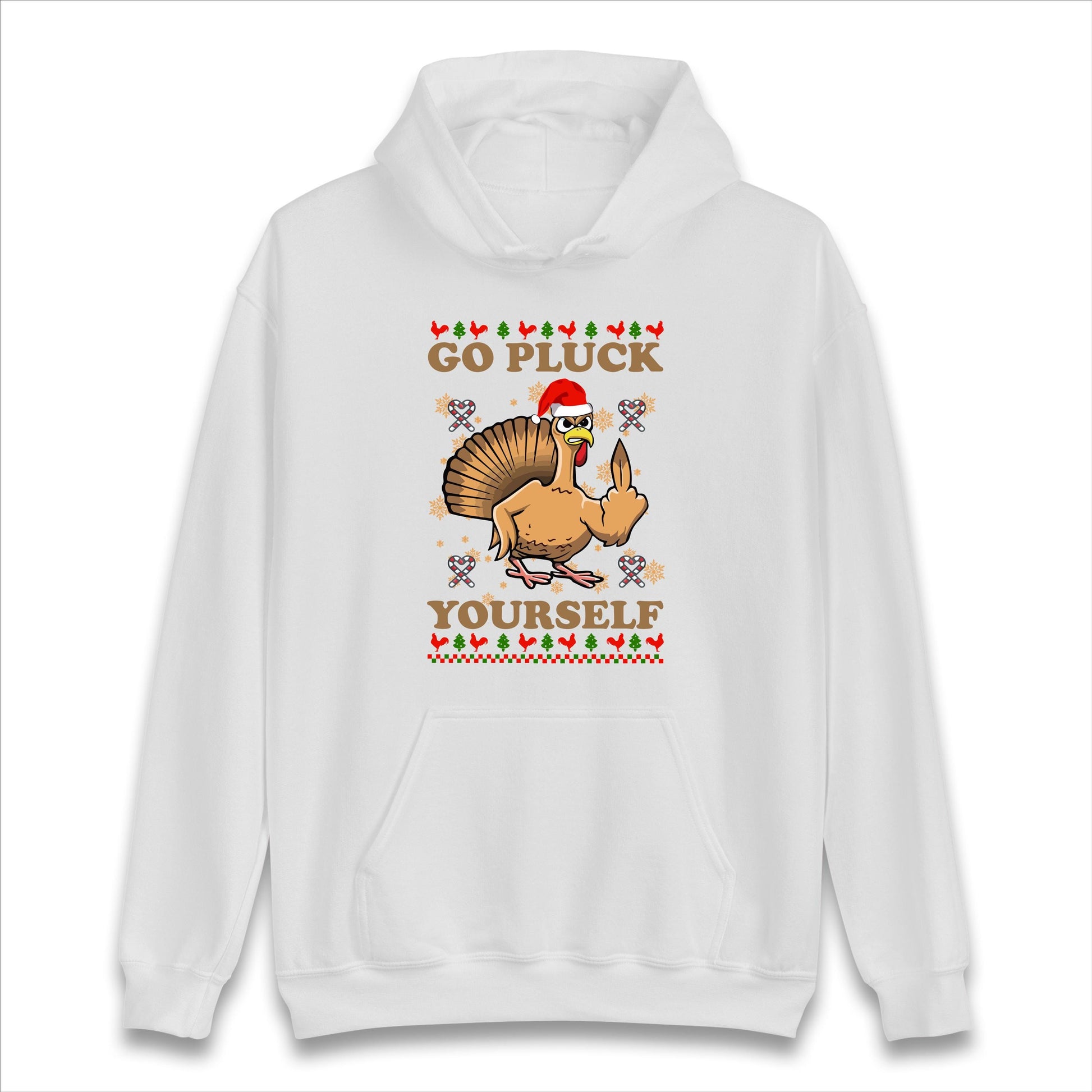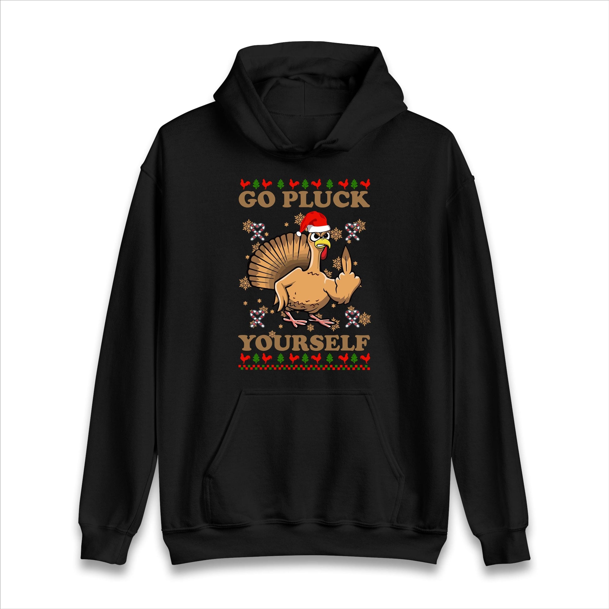 Go Pluck Yourself Funny Christmas Jumper, rude christmas turkey t shirt, christmas hoodie