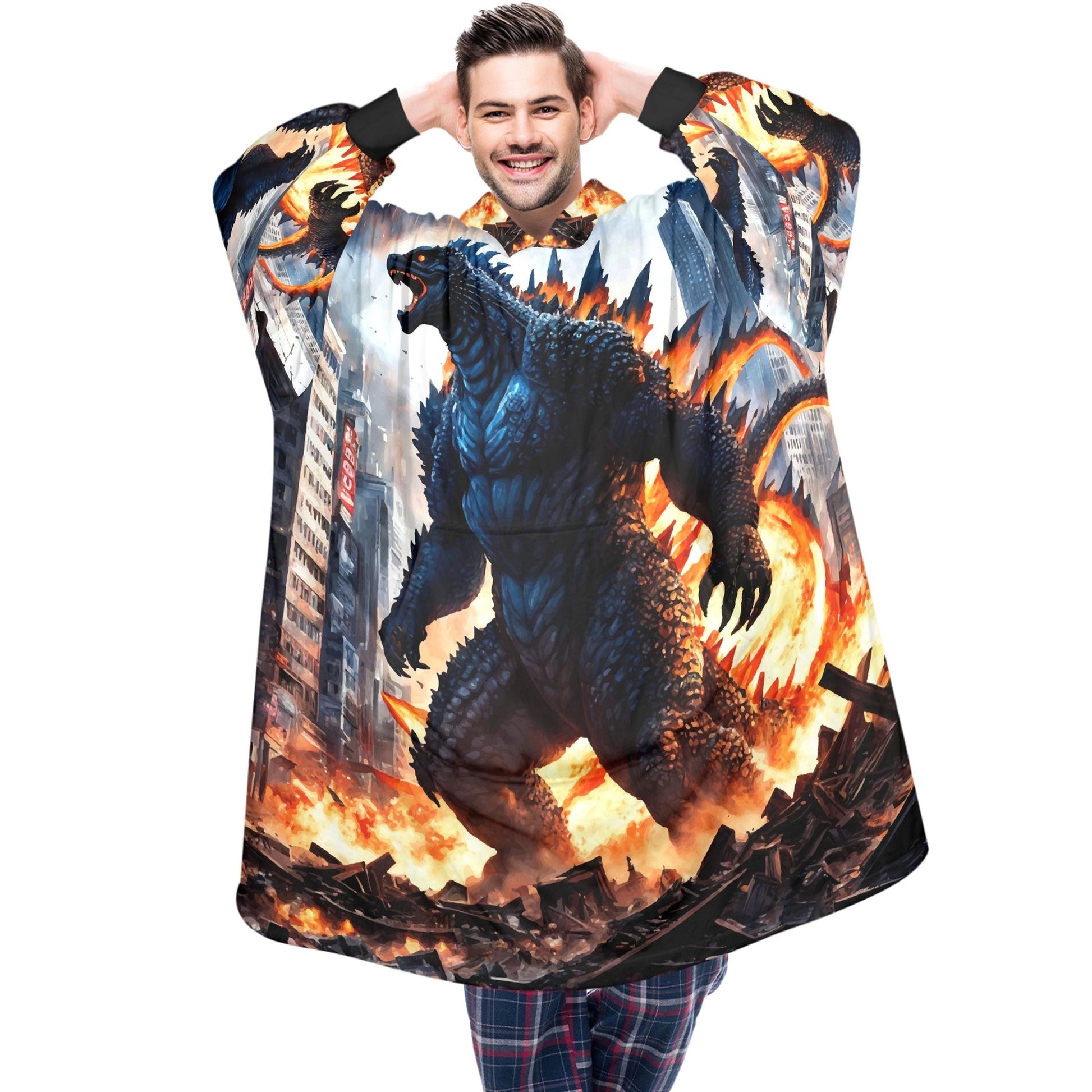 Godzilla Blanket Hoodie Retro Kaiju Monster Fleece Blanket