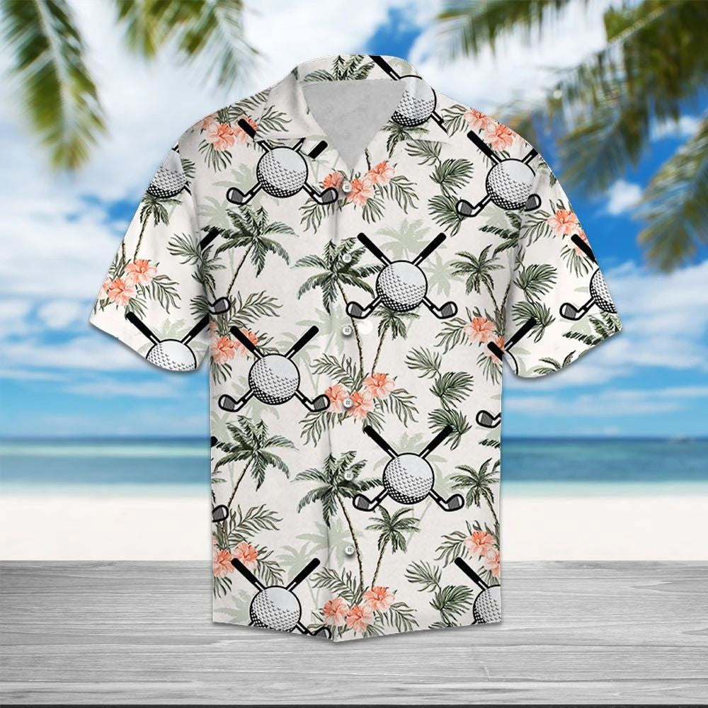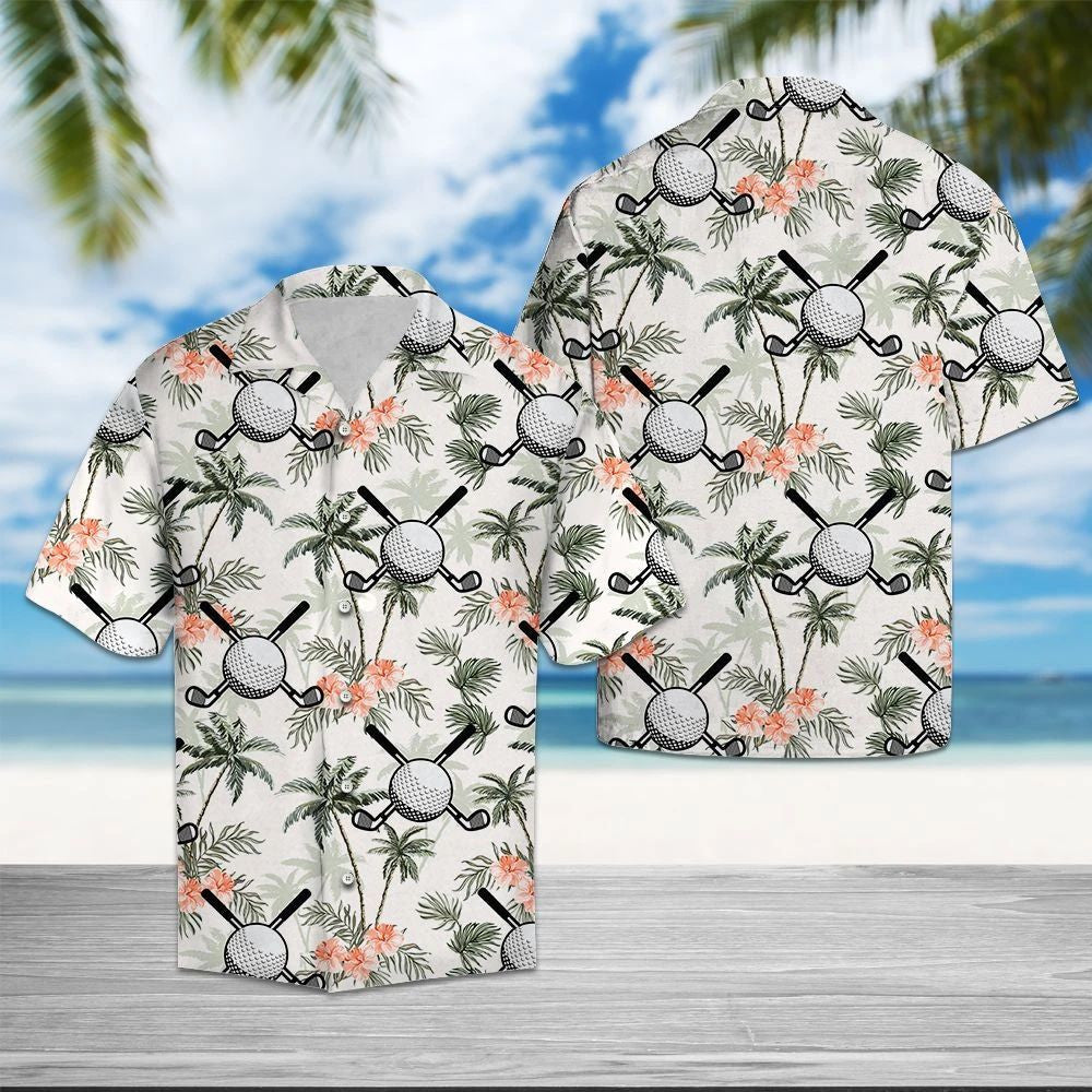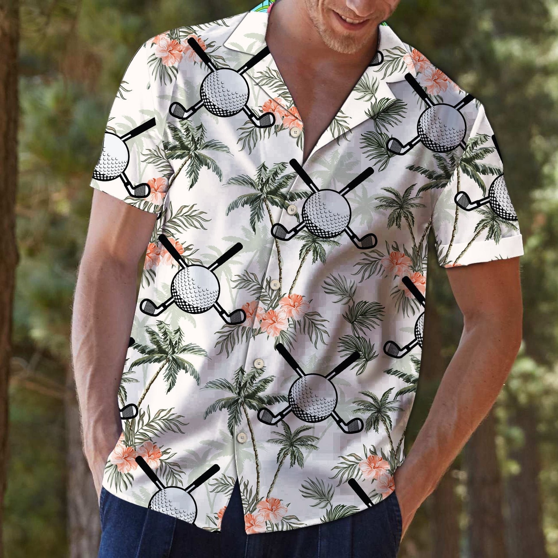 Gailf Putter Agus Liathróidí Le Crainn Pailme Dear Léine Haváís, Bronntanas Léine Haváíais, Bronntanas Nollag