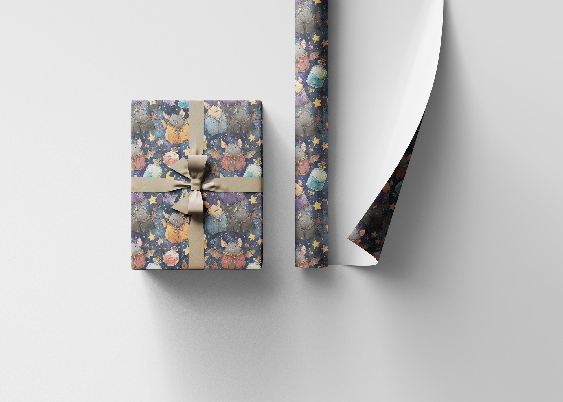 Goth Baby Birthday Wrapping Paper with Creepy Cute Bat Theme, Witchy Halloween Present Wrap for Moms & Kids #12