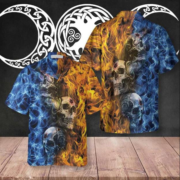 Bronntanas Dóiteáin Agus Uisce Gotach Skull Do Léine Haváís Oíche Shamhna, Bronntanas Léine Haváís, Bronntanas Nollag