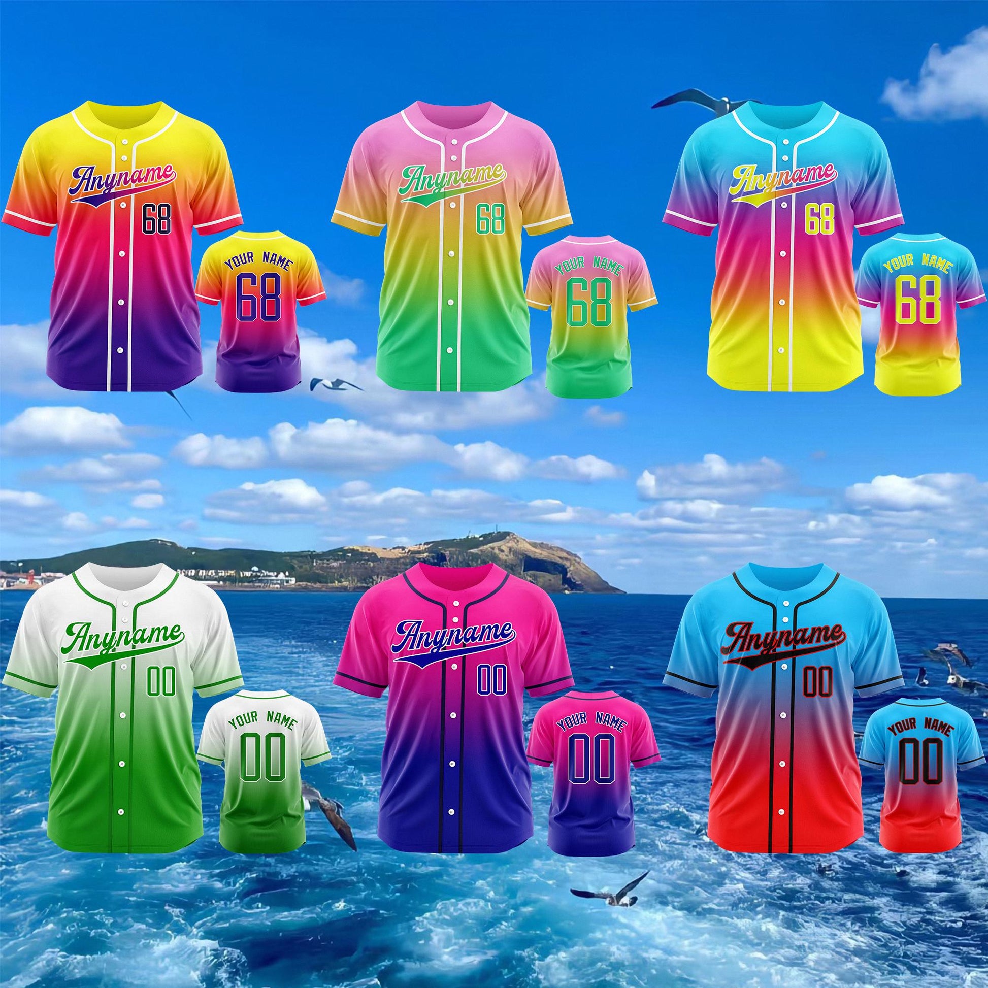 Gradient Custom Baseball Jersey, Personalized Team Name & Number Logo Shirt, Matching Sports Gift for Adult Kid, Gradient Baseball Uniform