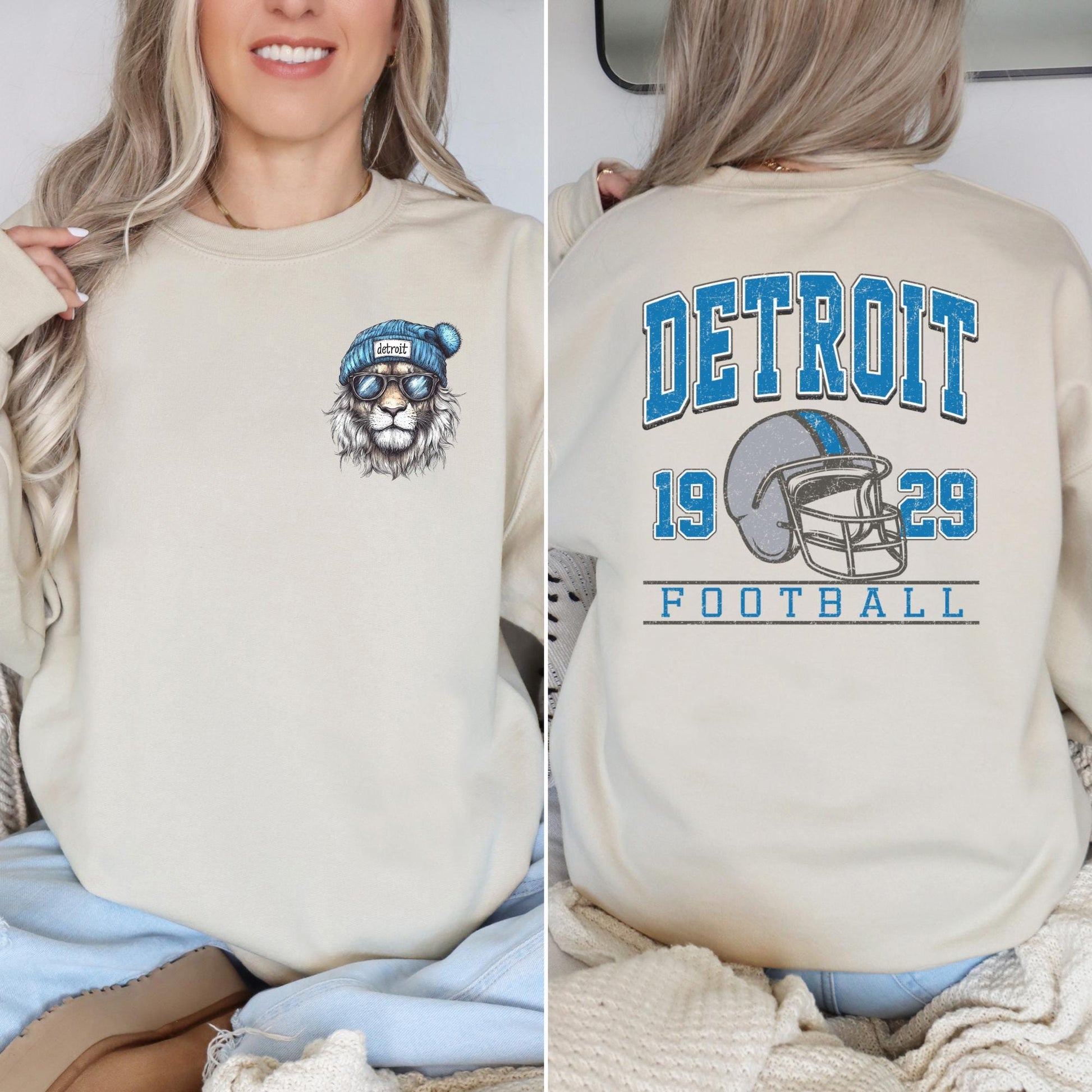 Graphic Detroit Mascot Football Sweatshirt, Game Day Gift Shirt, Detroit Football Fan Tee, Retro Detroit Team Shirt, Sport Mascot Gifts