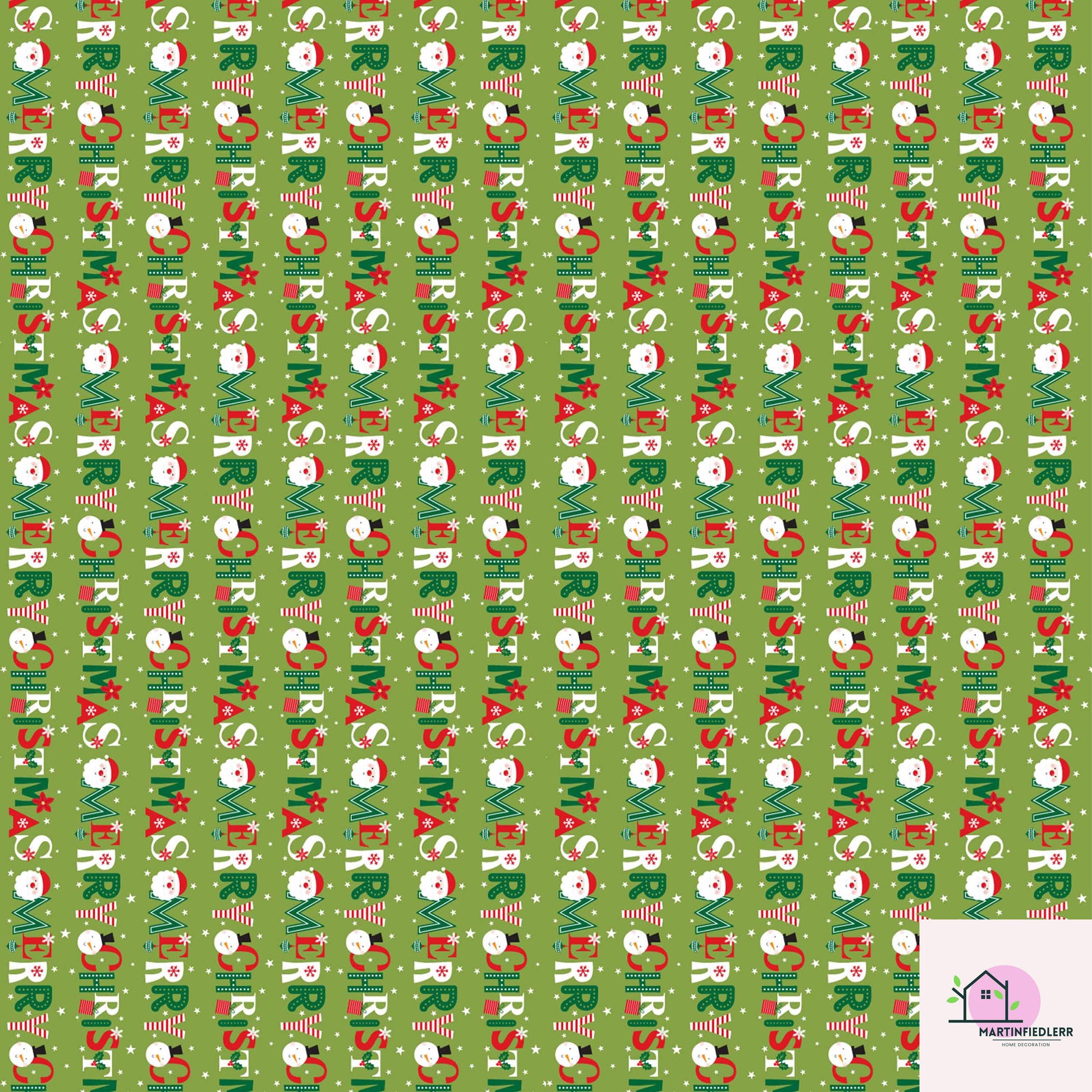Green Christmas Wrapping Paper: Santa, Tree, Candy Cane Design
