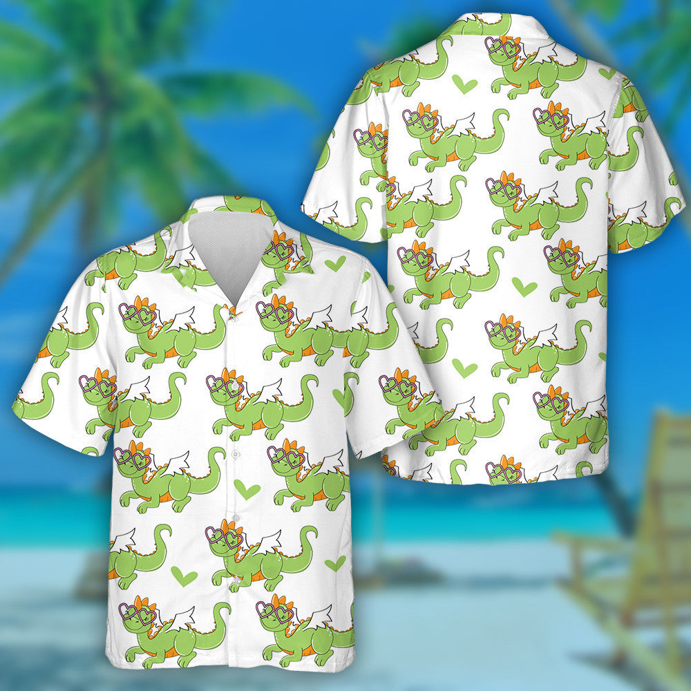 Cuileoga Dragon Glas ar Chúlra Bán Léine Haváí, Bronntanas Léine Haváí, Bronntanas Nollag