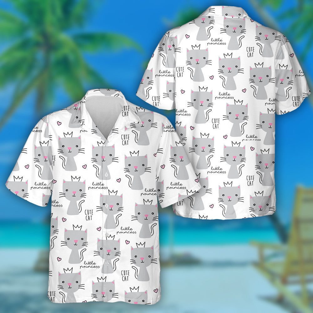 Cat banphrionsa Liath ar Chúlra Bán Léine Haváís, Bronntanas Léine Haváí, Bronntanas Nollag
