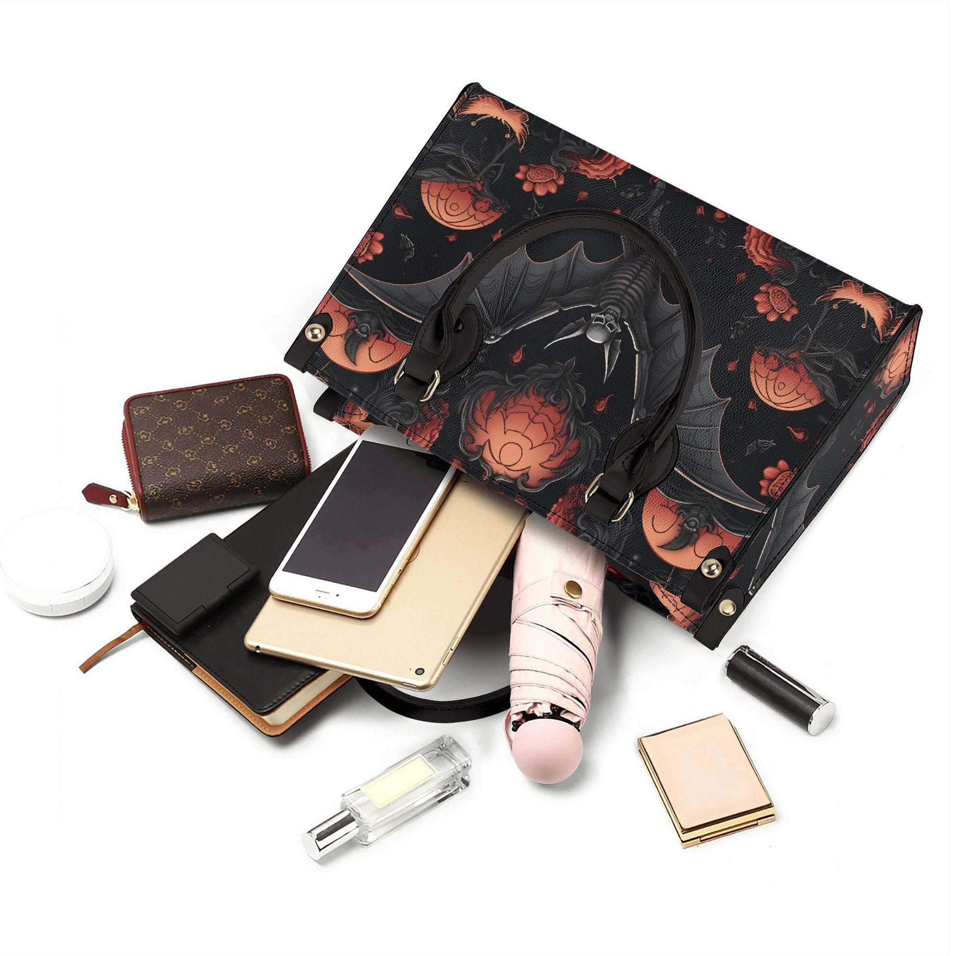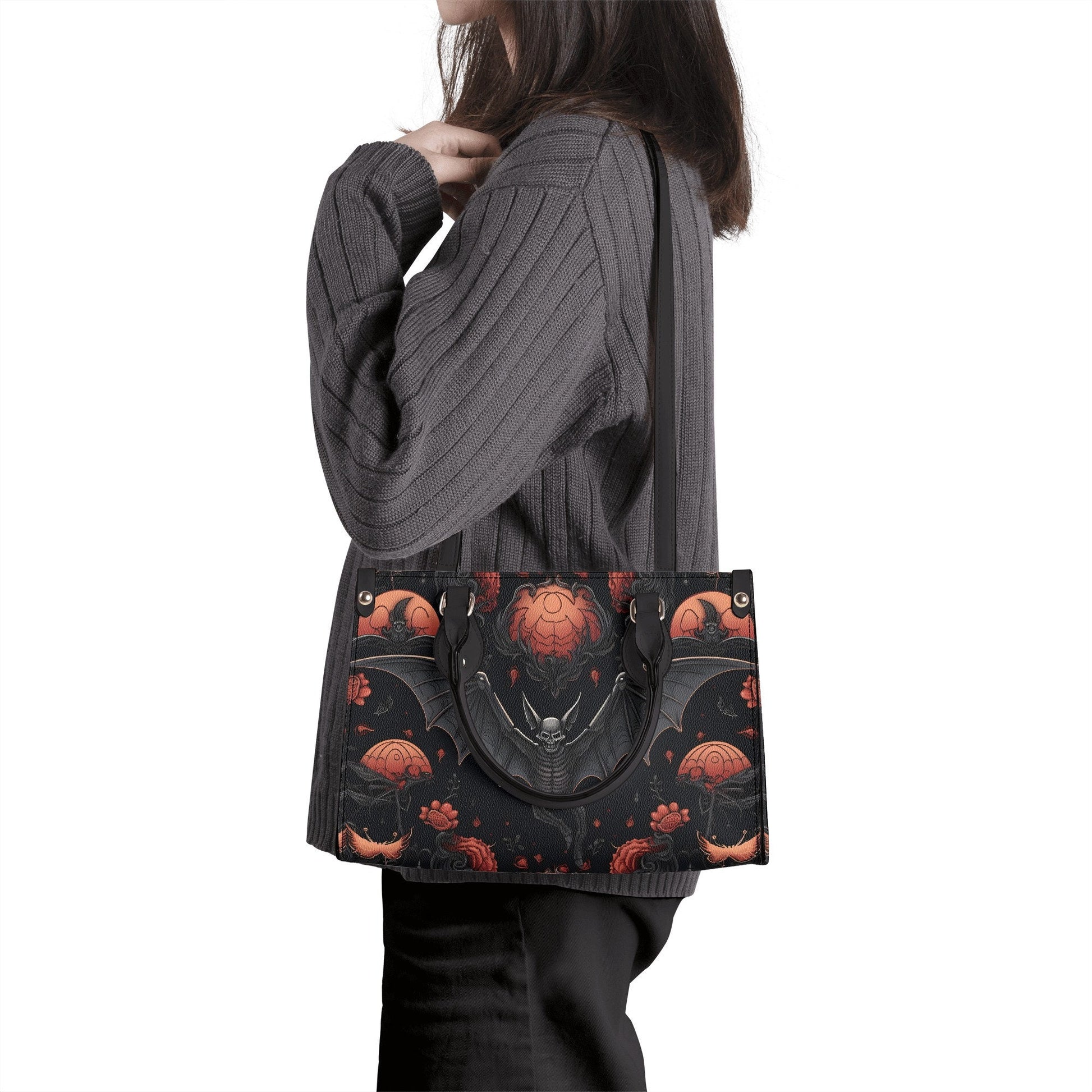 Halloween Bat Vegan Leather Bag, Horror Leather Bag, Dark Scoopy Halloween Dark Academia Handbag, Black Top Handle Bag, Gift For Halloween