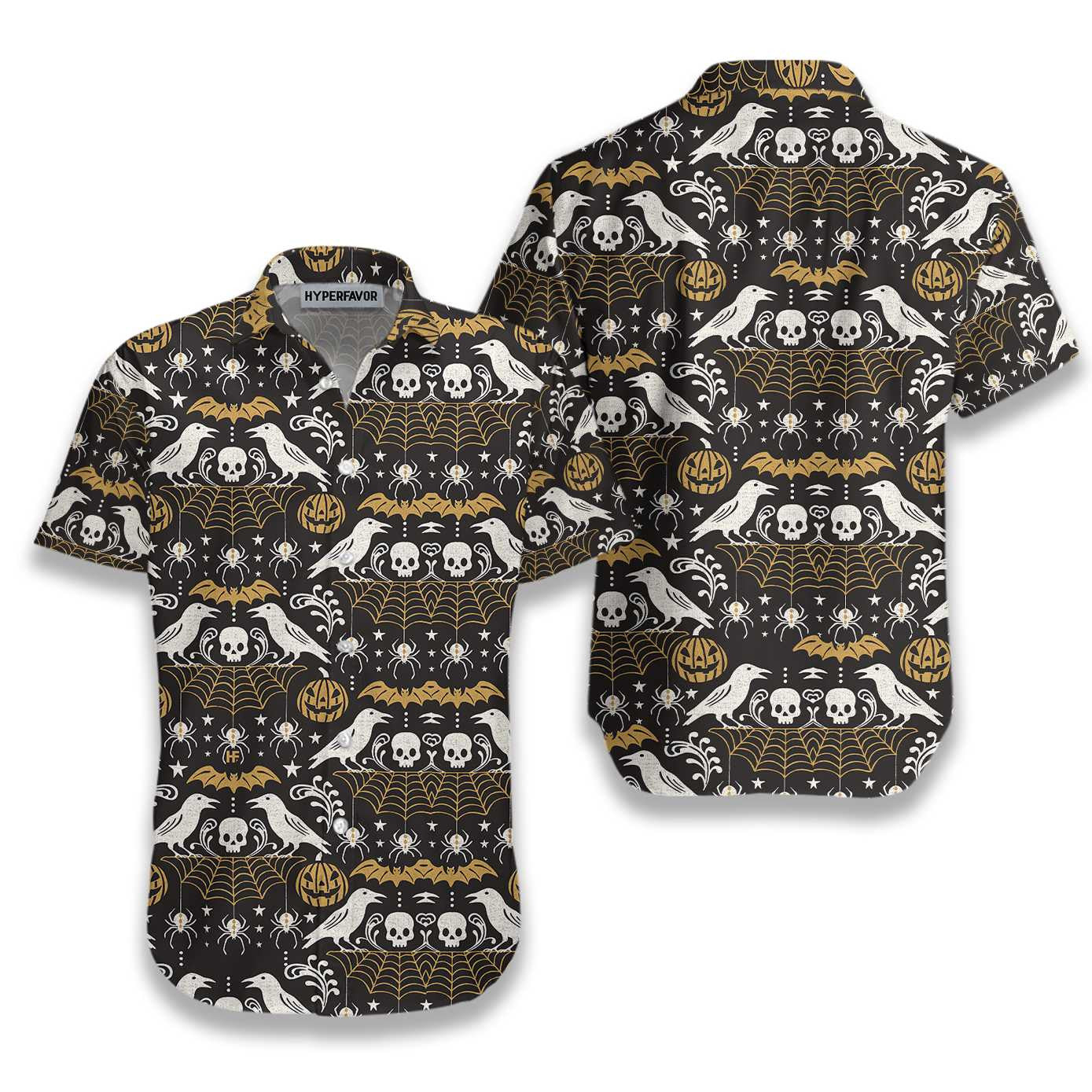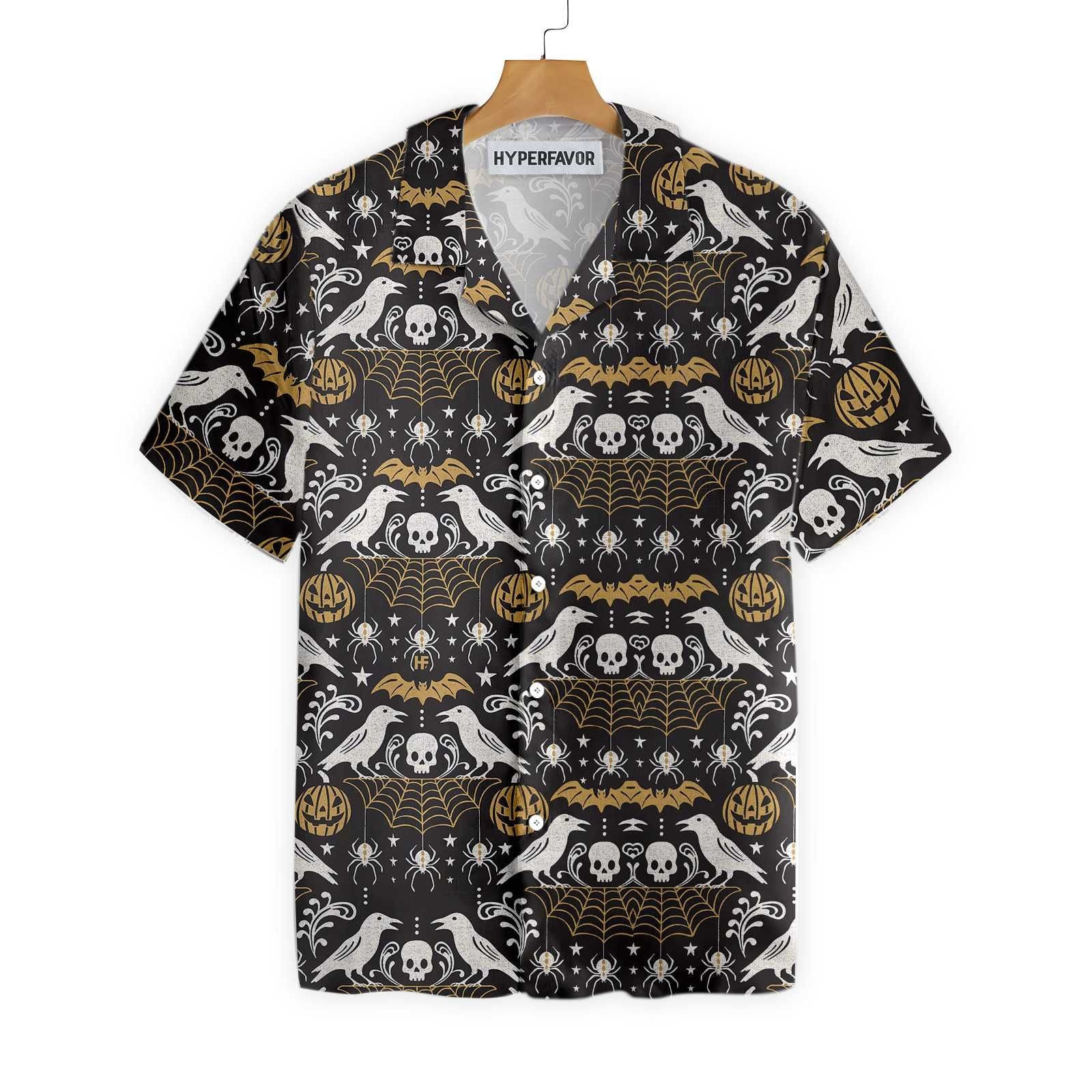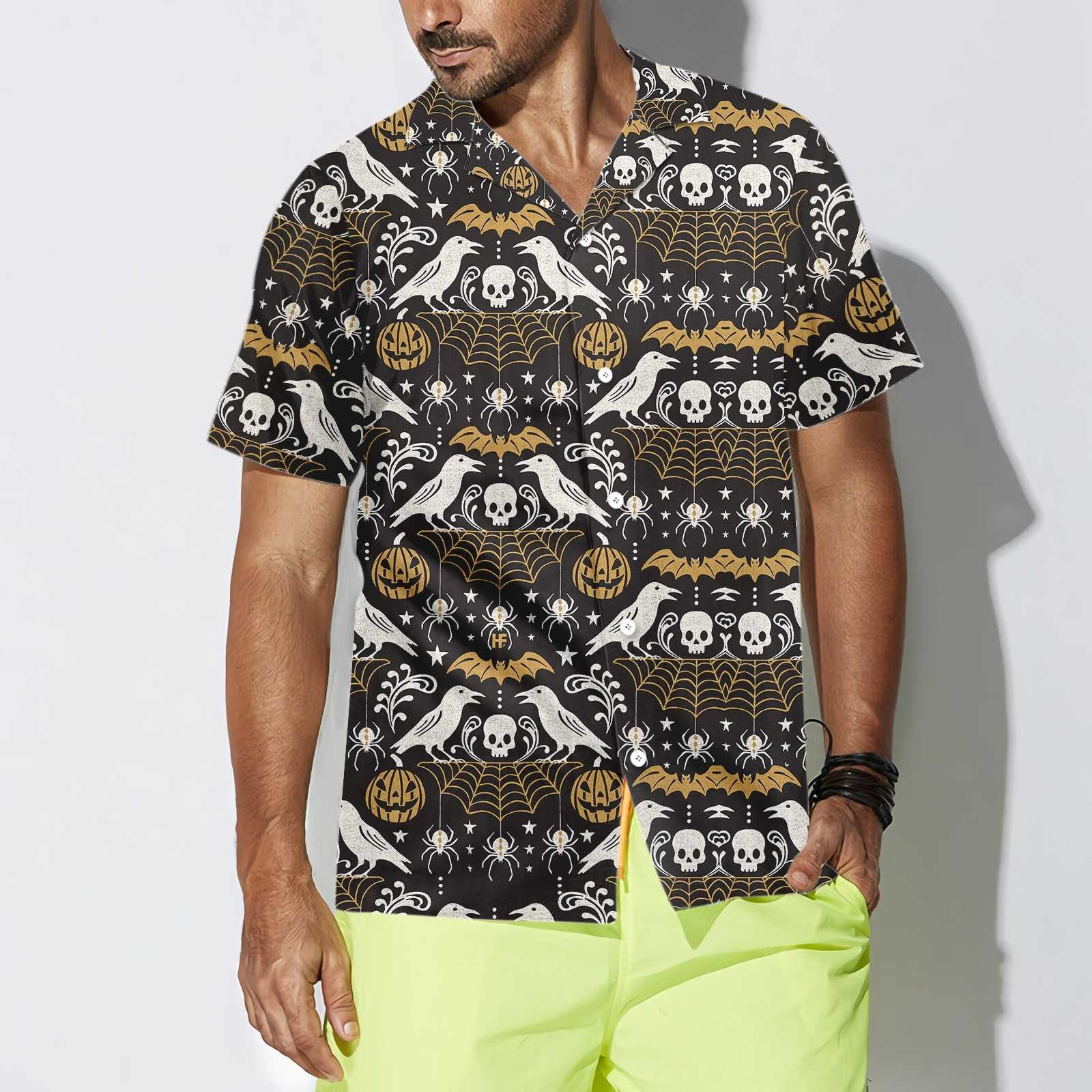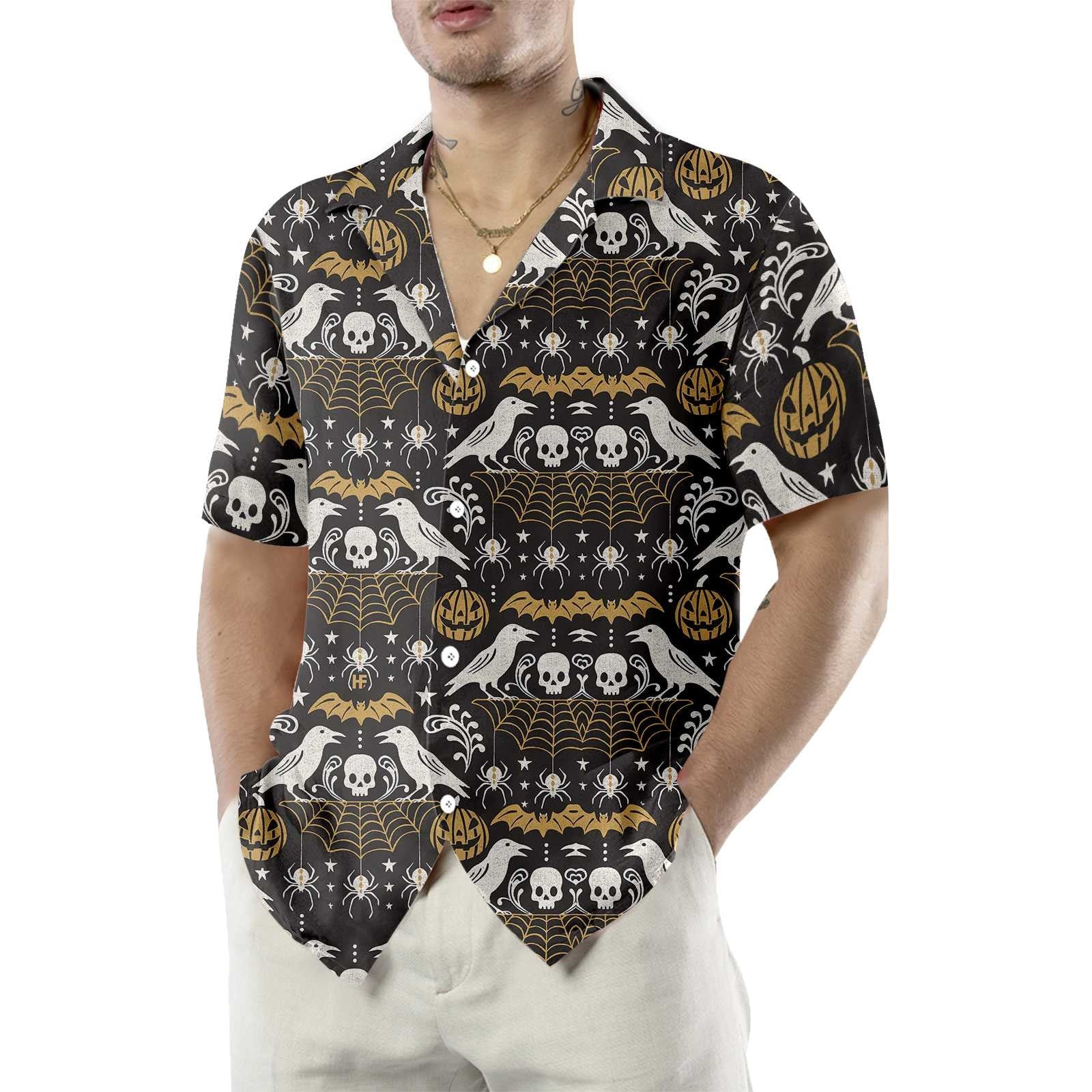 Oíche Shamhna Pumpkin Dubh Agus Gréasán Damhán alla Léine Haváianach drámatúil, Bronntanas Léine Haváíais, Bronntanas Nollag