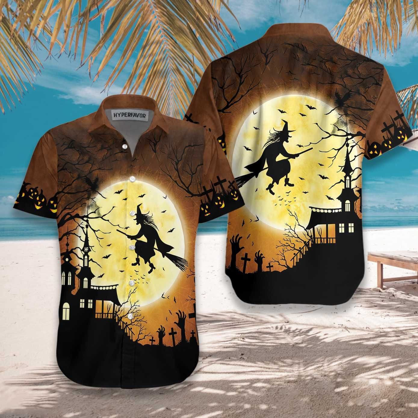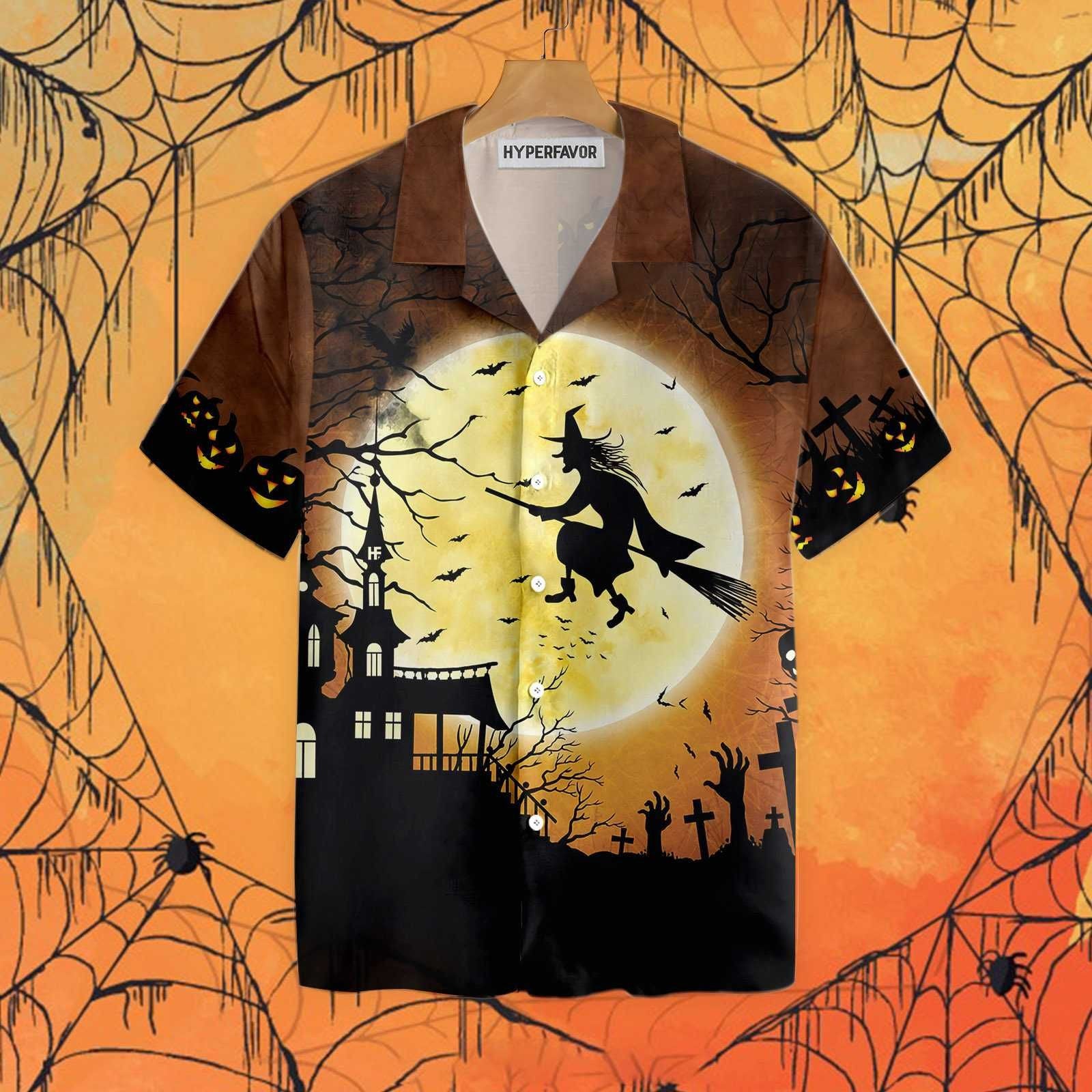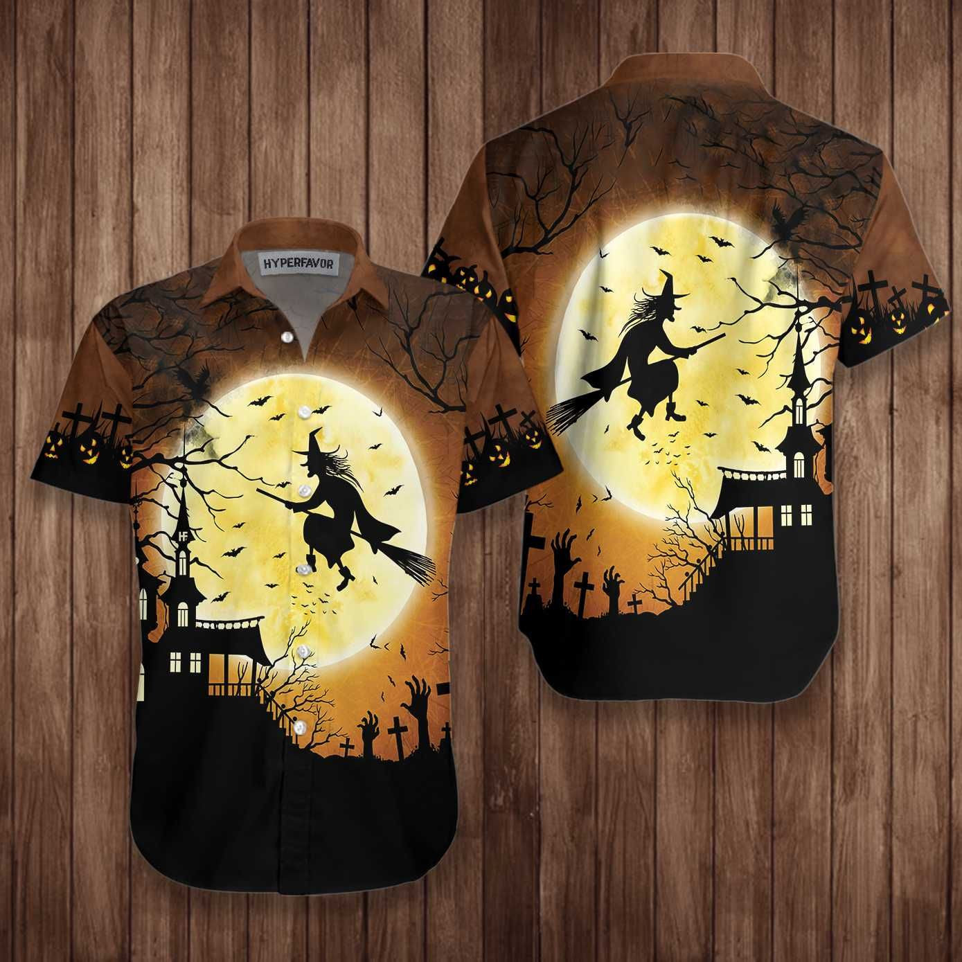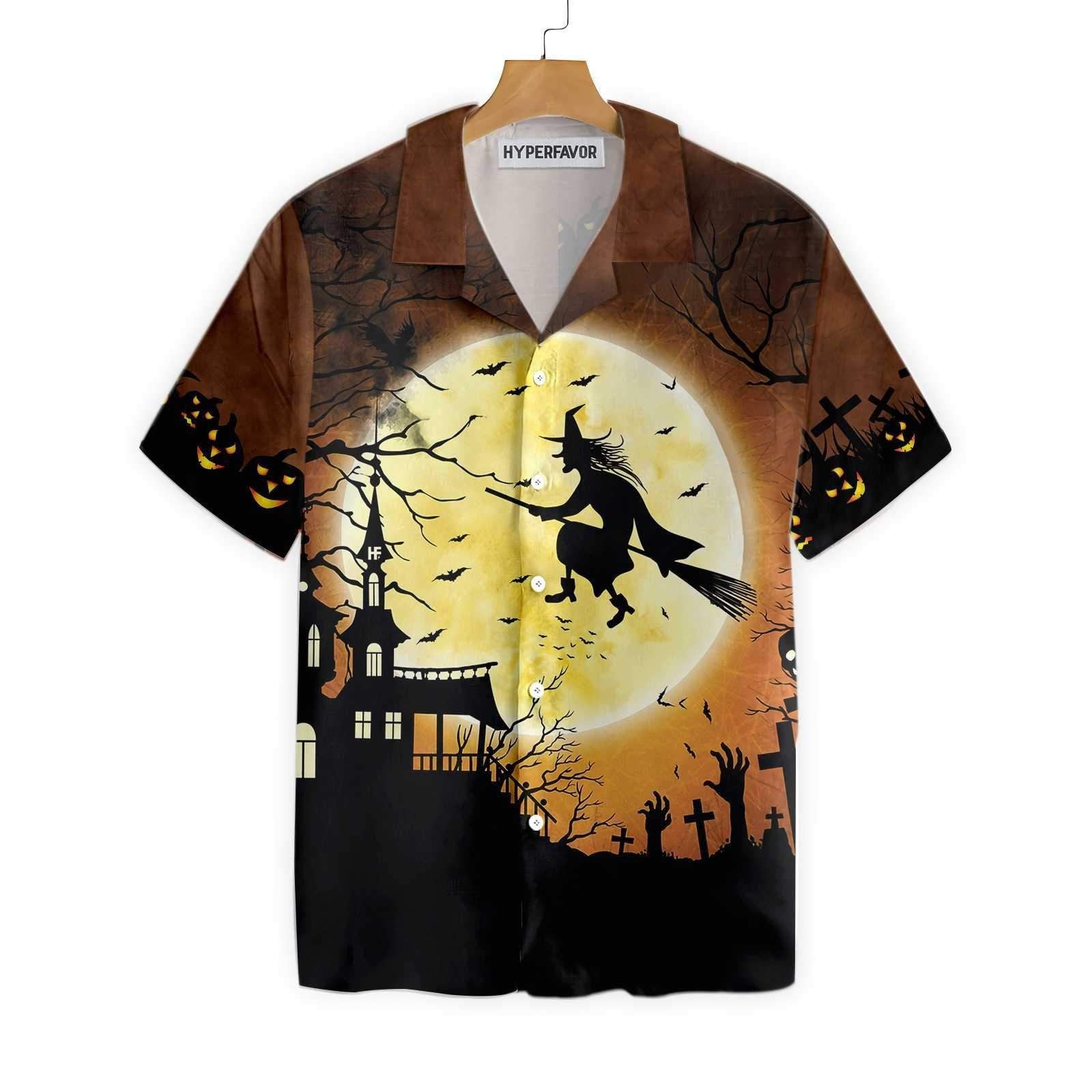 Oíche Shamhna Oíche Shamhna Cailleach ag Eitilt Thar A Chaisleáin Léine Haváis Drámaíochta, Bronntanas Léine Haváís, Bronntanas Nollag