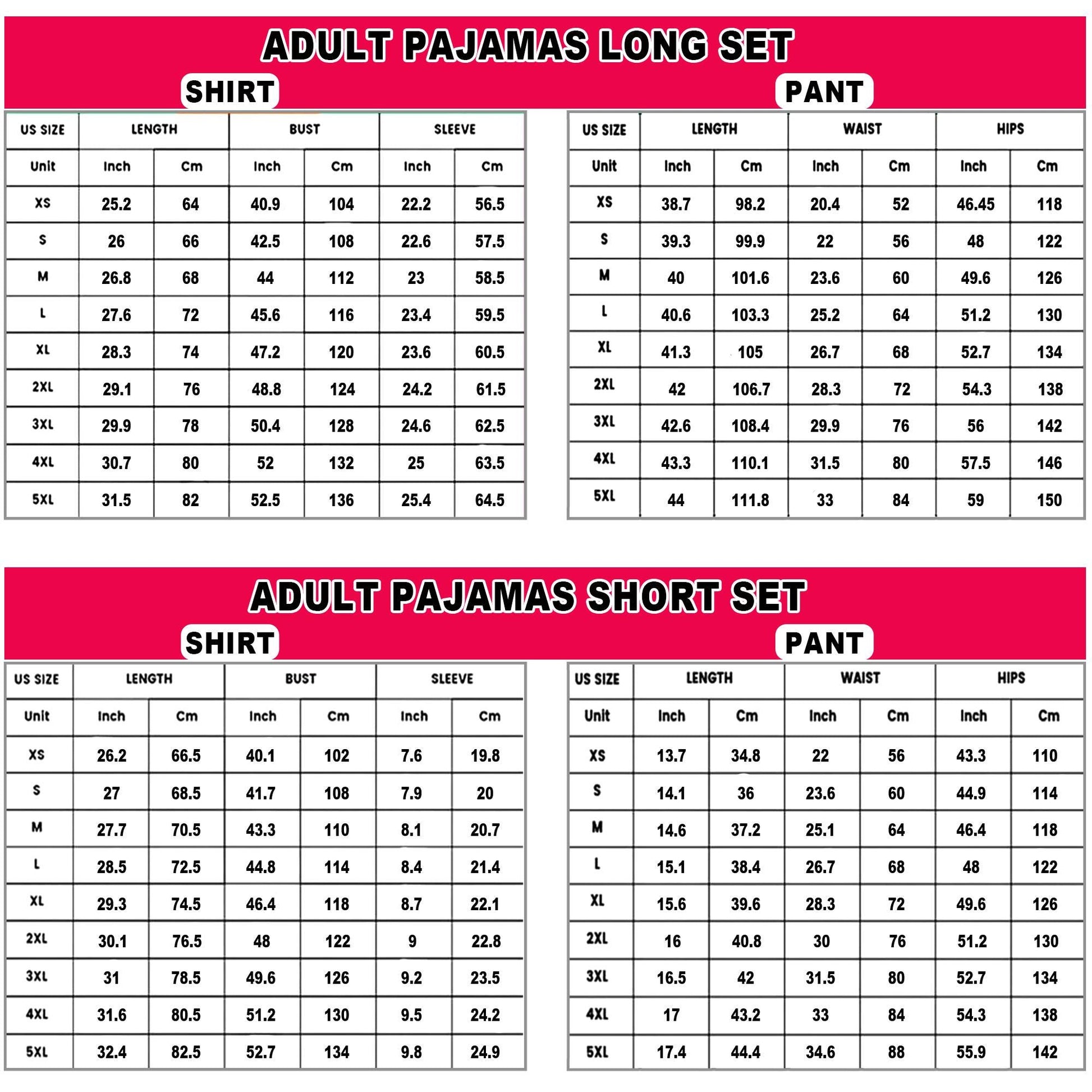 - Adult Long Set: Long-sleeve shirt + long pants.