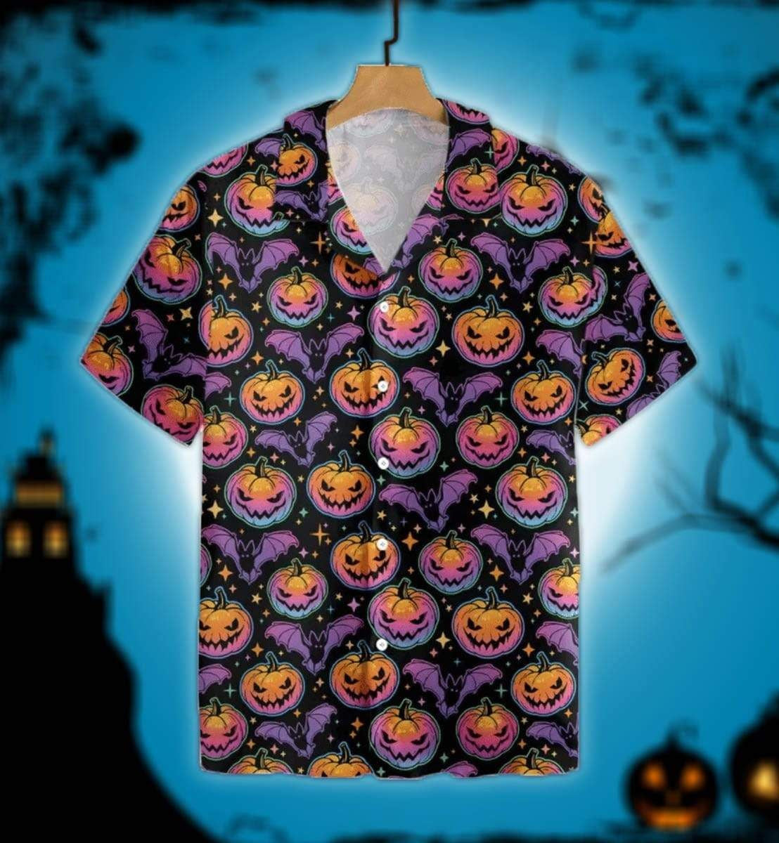 Oíche Shamhna Corcra Glowing Scanrúil Caidéil Olc Cúlra Abaithe Léine Haváíais, Bronntanas Léine Haváís, Bronntanas Nollag