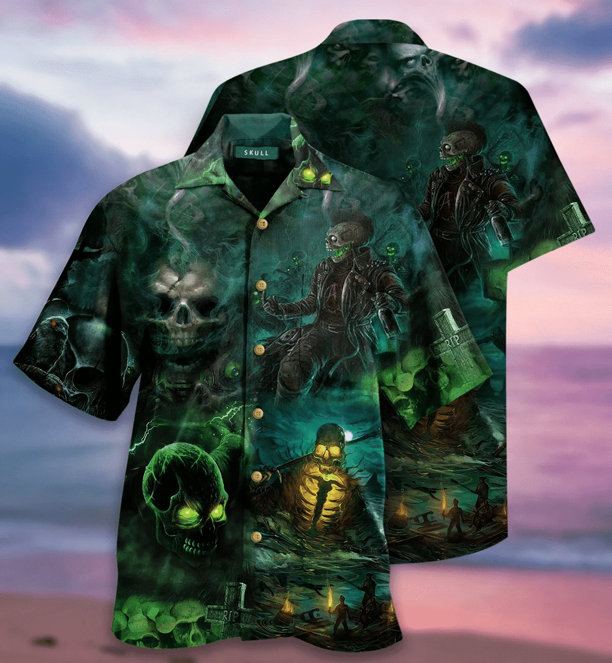 Cúlra Nimhe Scary Oíche Shamhna cloigeann agus cnámharlach Léine Haváís, Bronntanas Léine Haváís, Bronntanas Nollag