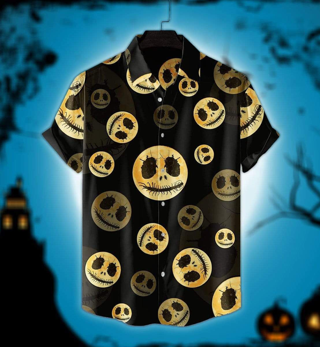 Oíche Shamhna An Ghealach Órga Cúlra Skull creatlach Léine Haváís, Bronntanas Léine Haváís, Bronntanas Nollag