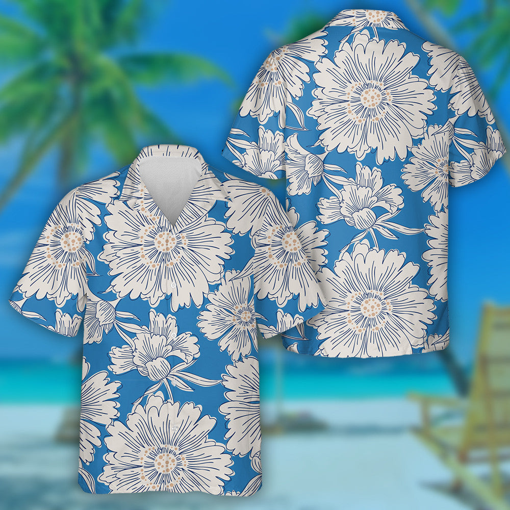 Bláthanna Gairdín Coimrithe Lámh-tharraingthe Dearadh Téama Gorm Léine Haváís, Bronntanas Léine Haváíais, Bronntanas Nollag