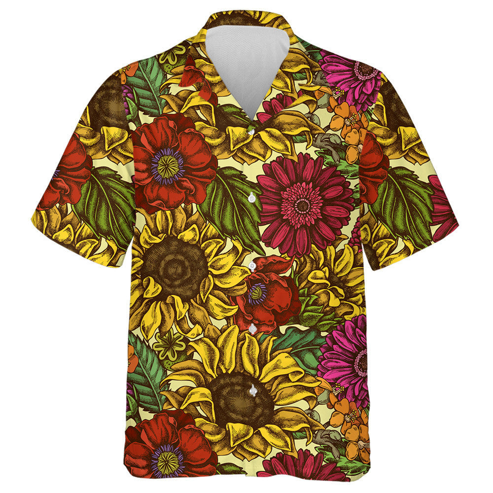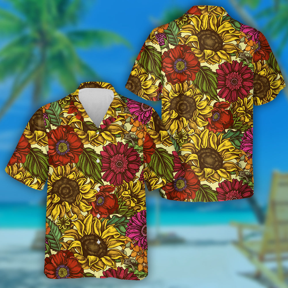 Bláth Poppy Daite Láimhe Tarraingthe Gerbera Lus na Gréine Léine Haváí Bhainne, Bronntanas Léine Haváíais, Bronntanas Nollag