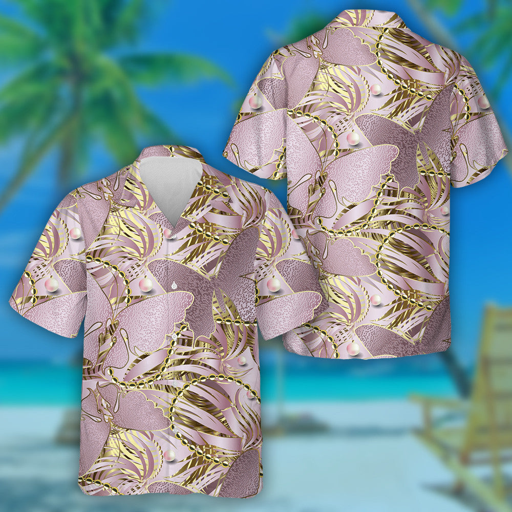 Féileacáin Glittery Lámhtharraingthe Cúlra Rós Óir Léine Haváí, Bronntanas Léine Haváíais, Bronntanas Nollag