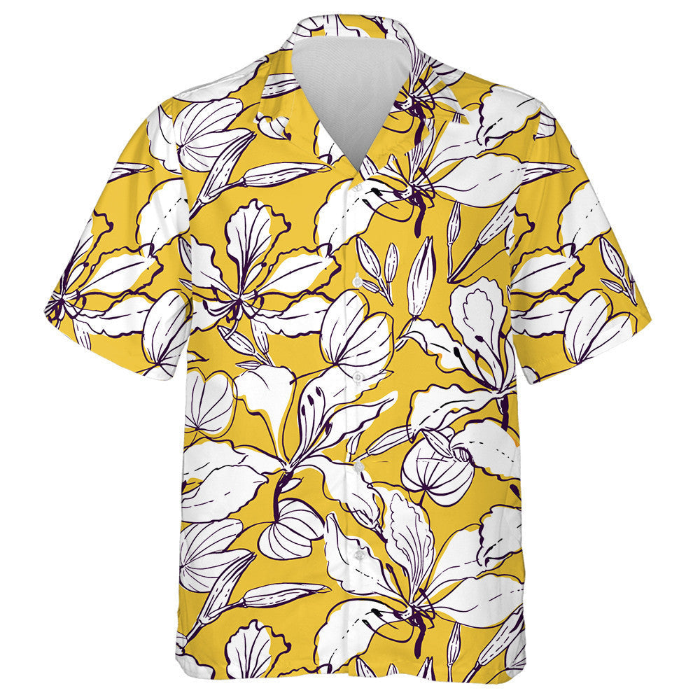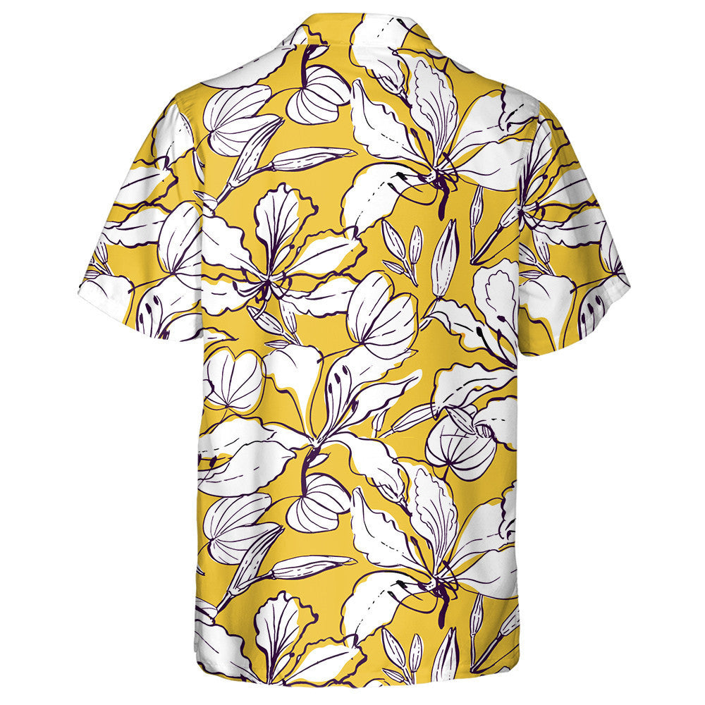 Bláthanna Crann Magairlín Stíl Haváíais Tarraingthe le Láimhe Bláthanna Agus Patrún Duilleoga Léine Haváís, Haváis Do Bronntanais