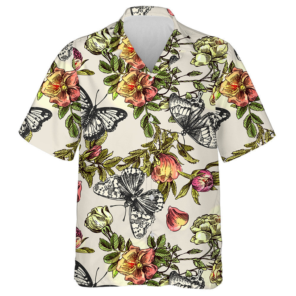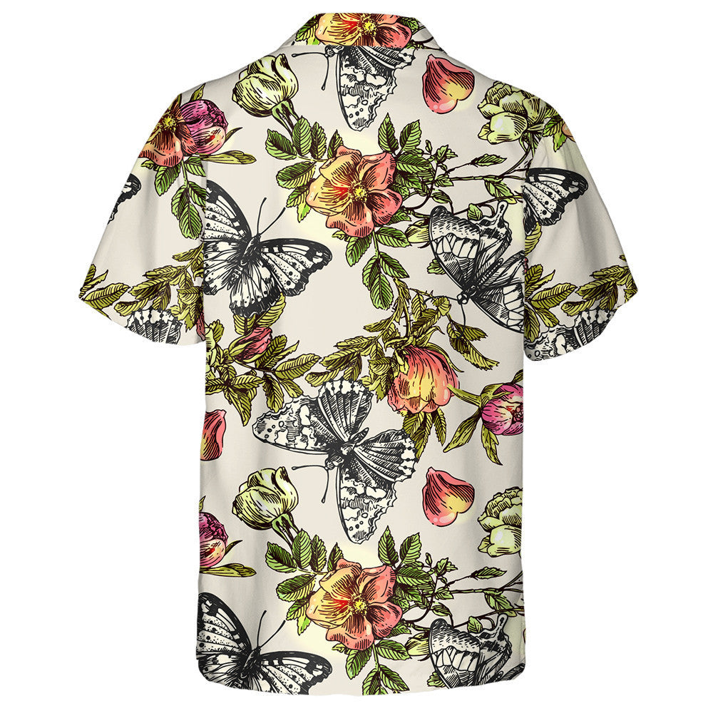 Láimhe Tarraingthe As Féileacáin Agus Bláthanna Léine Haváíais Stíl Boho, Bronntanas Léine Haváís, Bronntanas Nollag