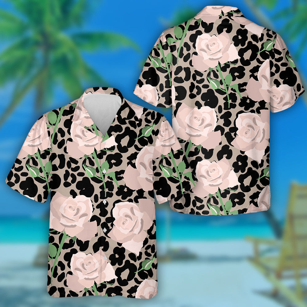 Rósanna Pastail Rómánsúla Lámhtharraingthe Ar an Léine Haváís Liopard, Bronntanas Léine Haváíais, Bronntanas Nollag