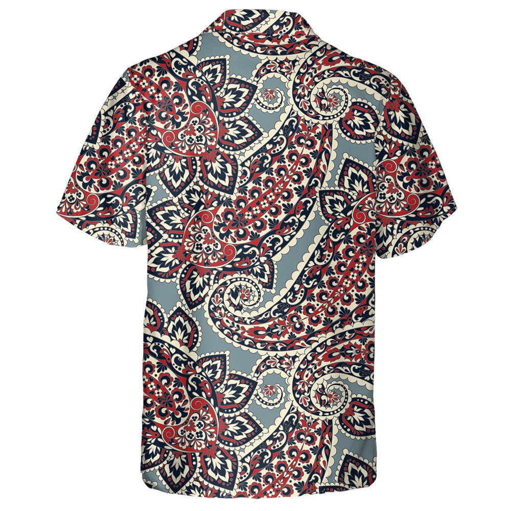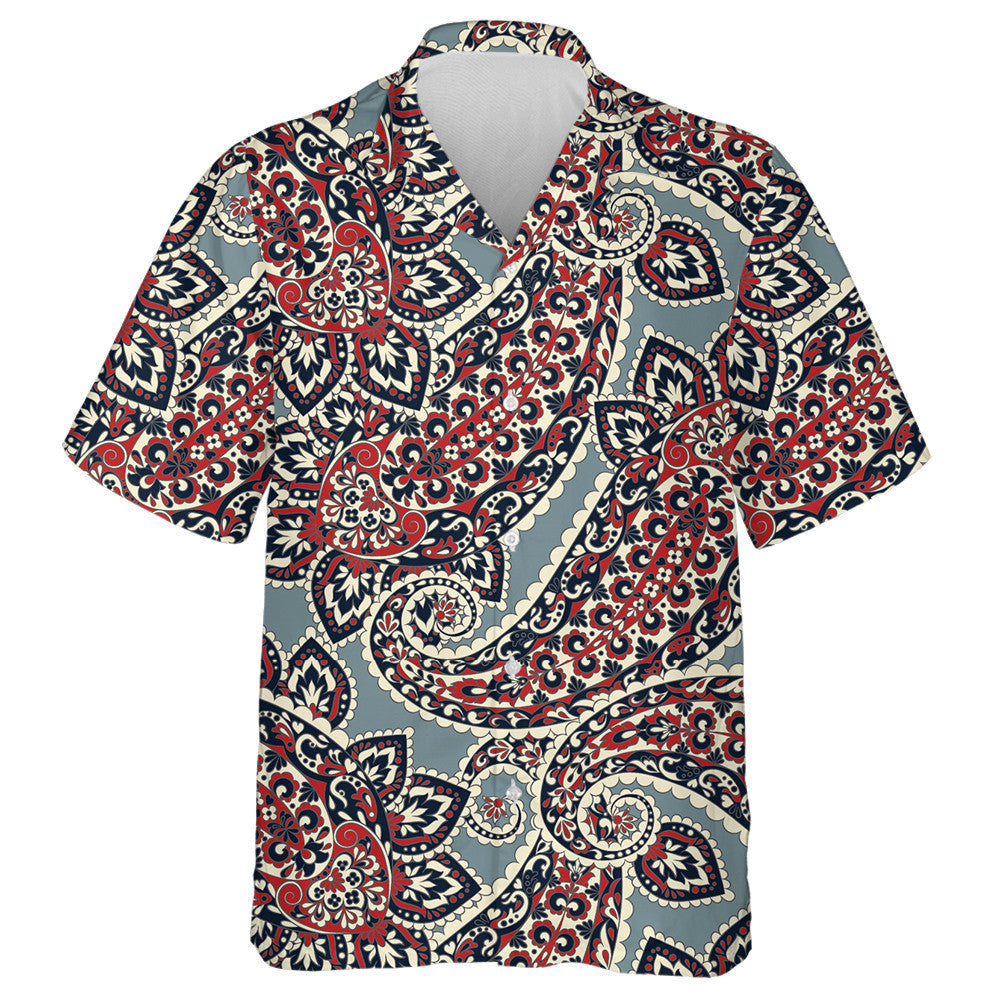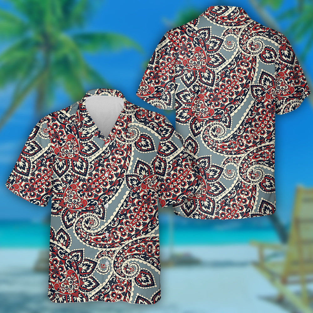 Patrún Paisley Traidisiúnta Dubh agus Dearg Lámhtharraingthe Léine Haváís, Bronntanas Léine Haváíais, Bronntanas Nollag