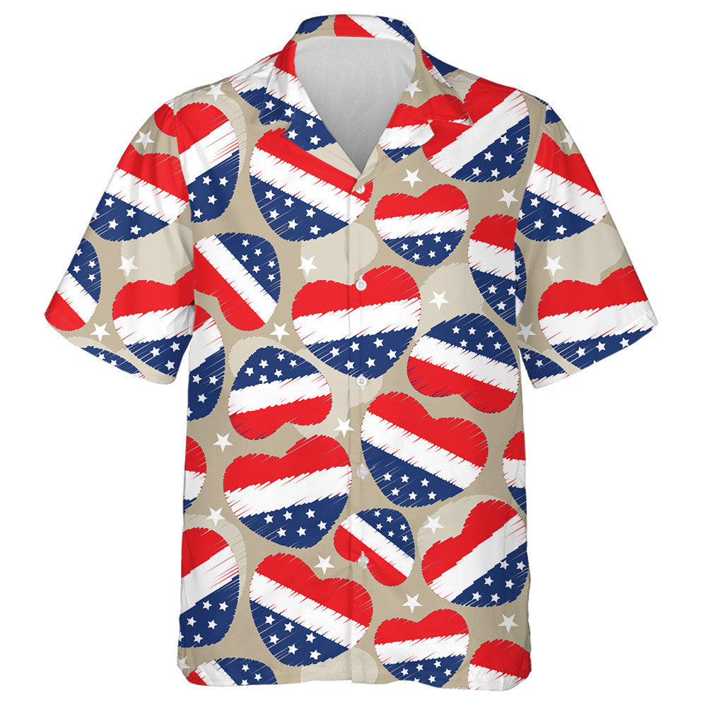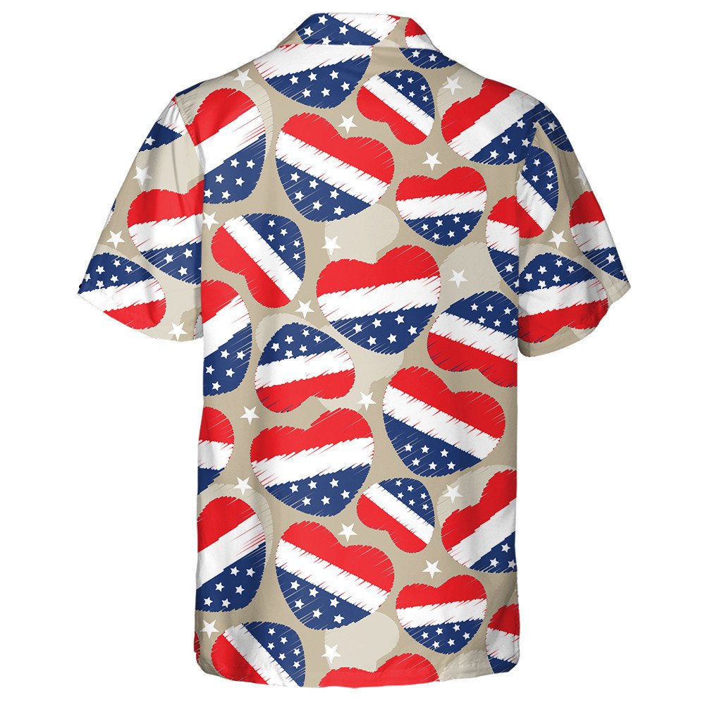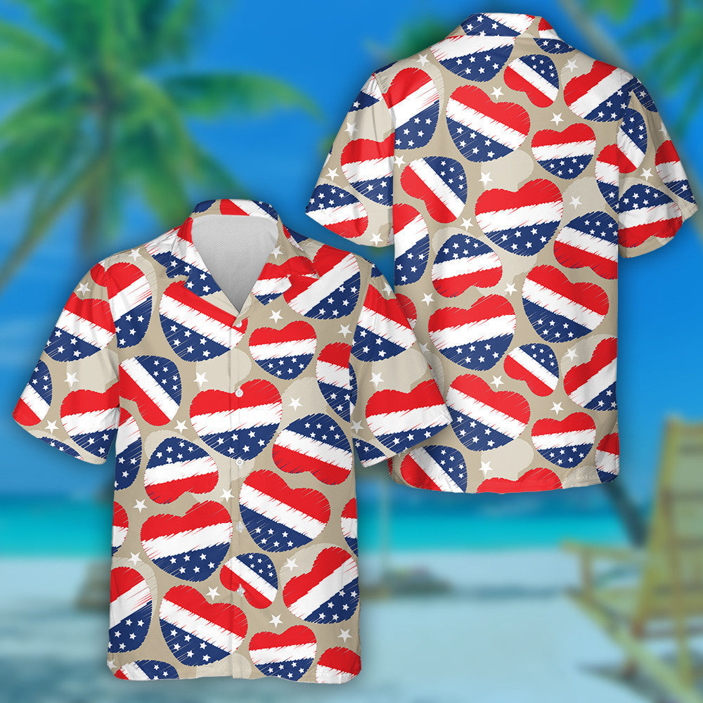 Sceitseáil Láimhe Croí Múnlaithe Le Patrún Bratach SAM Léine Haváís, Bronntanas Léine Haváíais, Bronntanas Nollag
