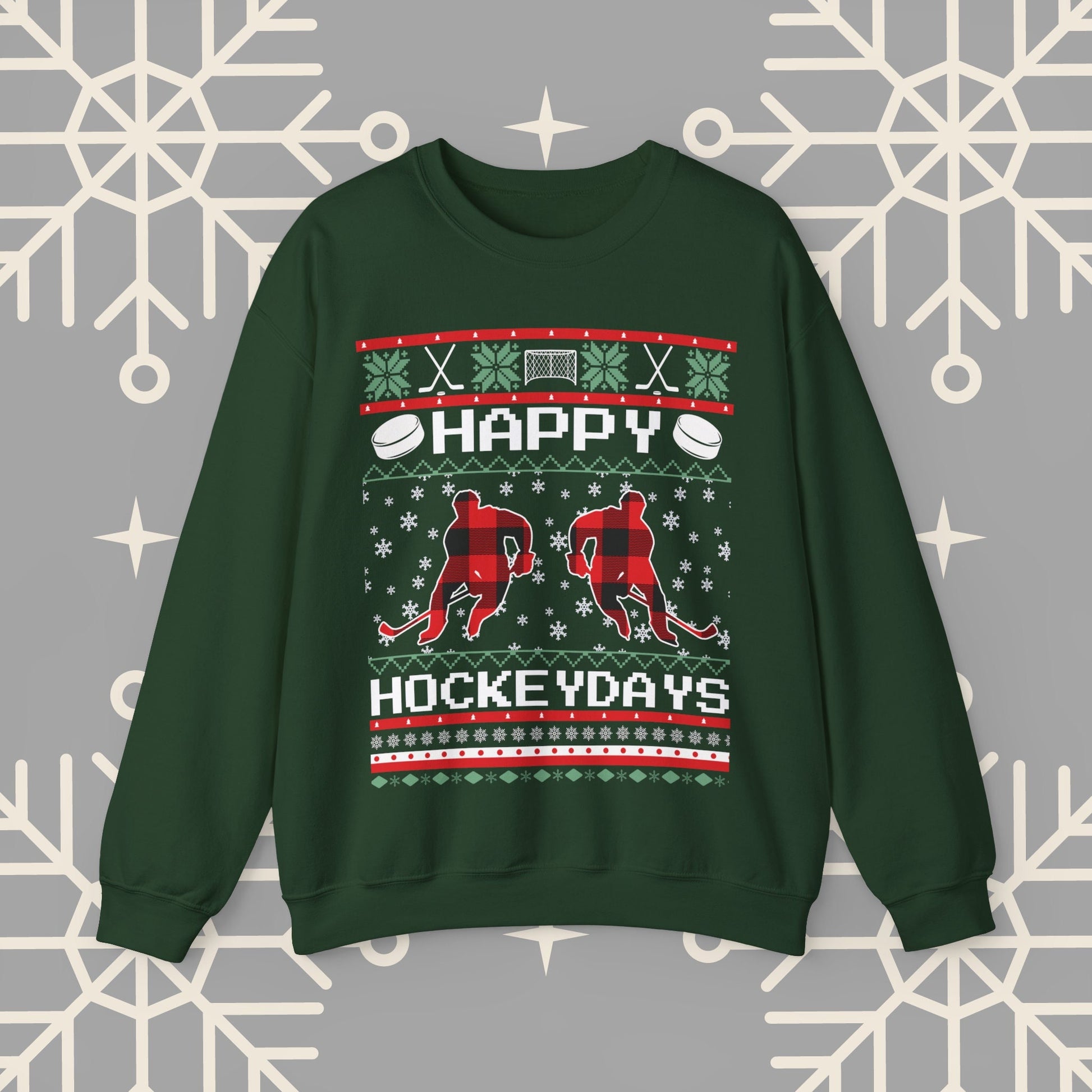 Happy Hockeydays Ugly Christmas , Hockey Christmas Sweatshirt, Holiday Ice Hockey Crewneck, Gift for Hockey Player