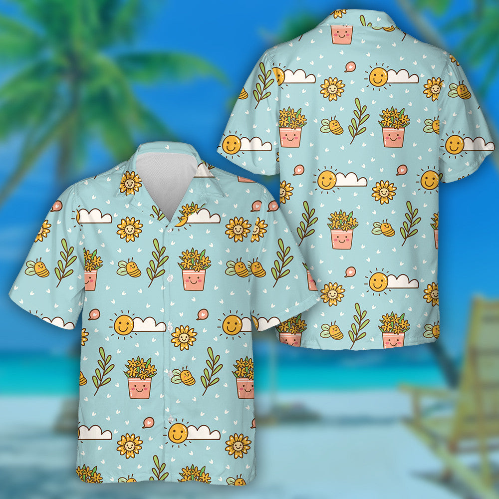 Lá Samhraidh Shona Le Cartún Lusanna Gréine Gréine Agus Beacha Léine Haváís, Bronntanas Léine Haváíais, Bronntanas Nollag
