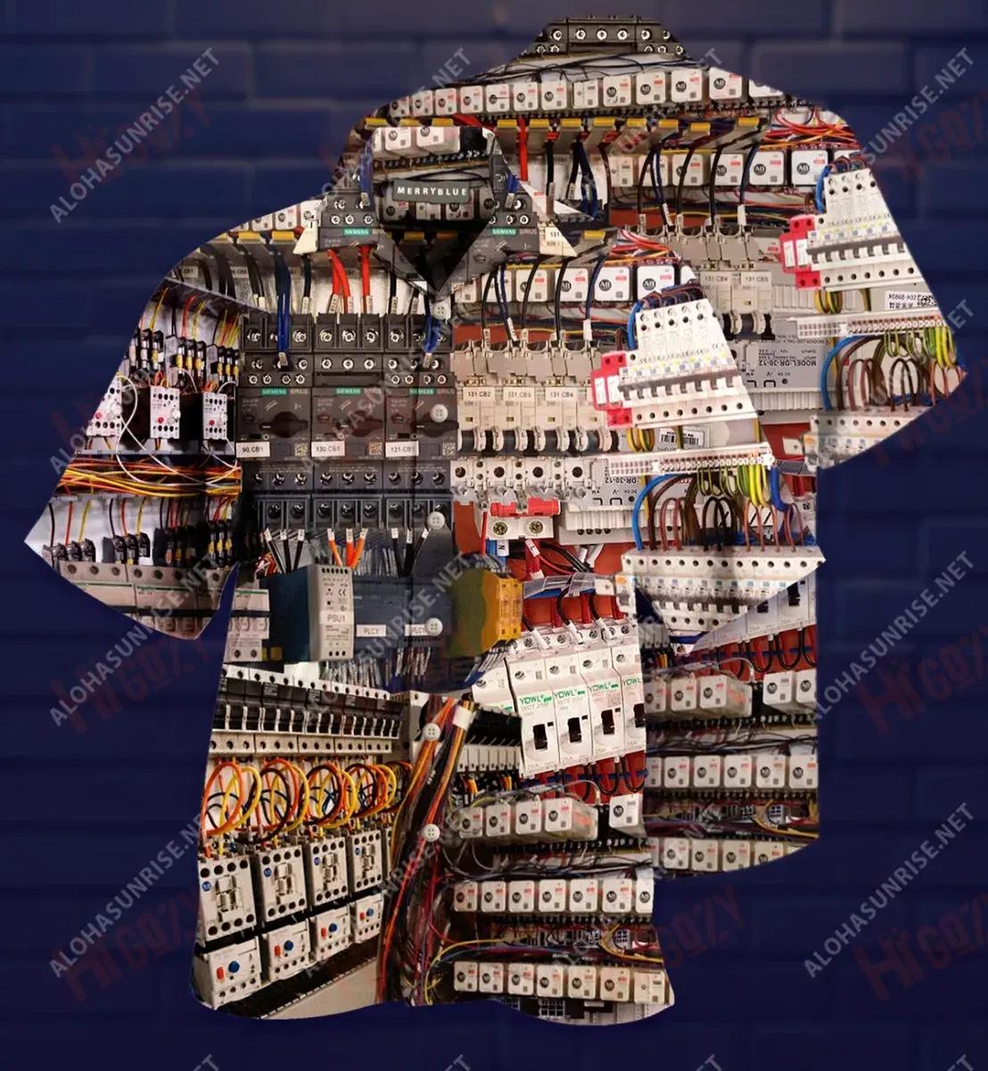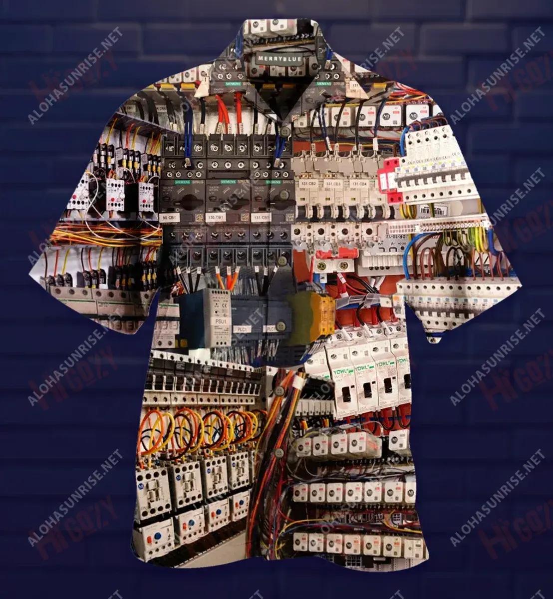 Ná bíodh Eagla ar bith ar an Leictreoir Anseo Léine Gearr Muinchille Unisex Laethanta Saoire Léinte T Haváíais Seanréalta Léine Haváíais Patrún Léine Haváíais, Bronntanas Léine Haváíais, Bronntanas Nollag