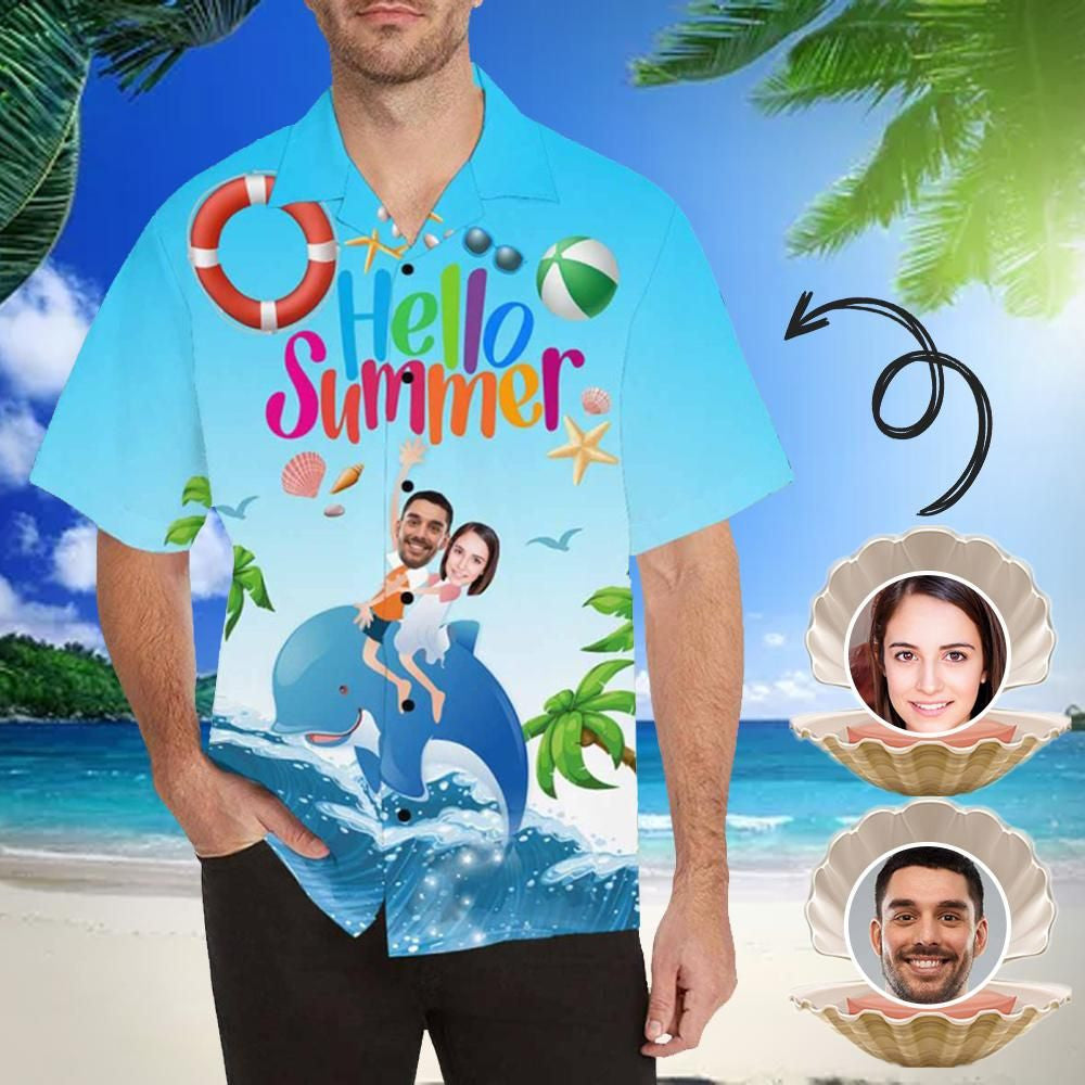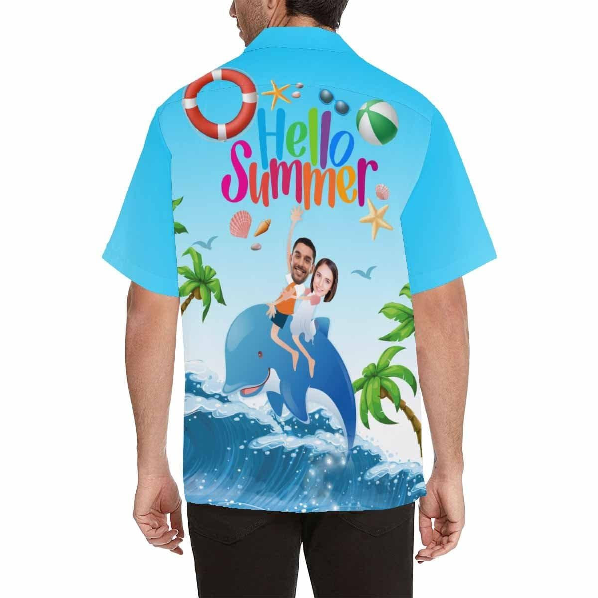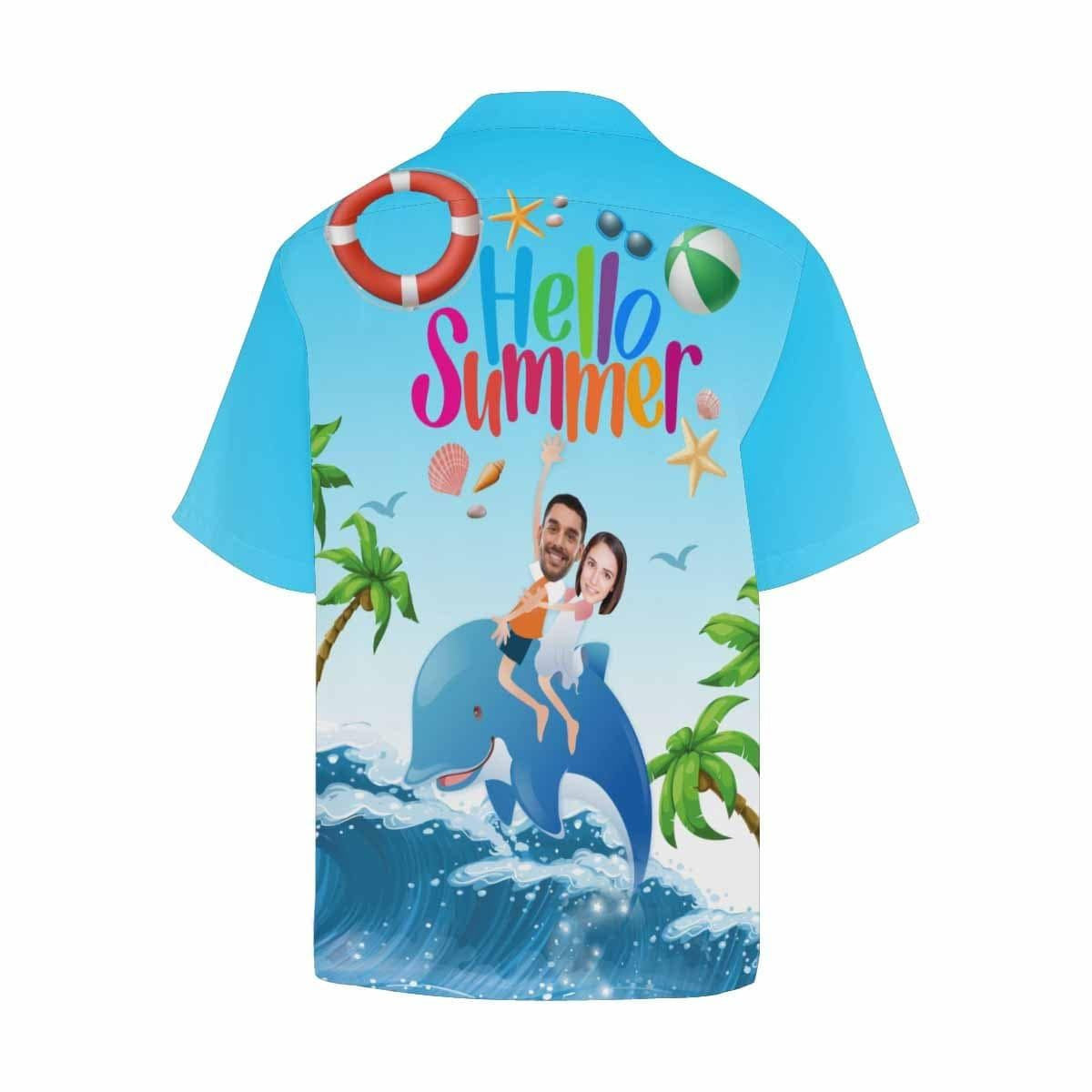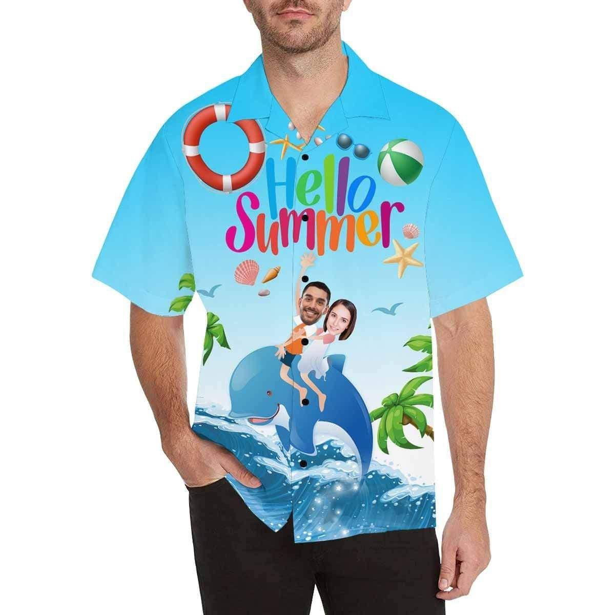 Dia duit Samhraidh Greannmhar Lánúin Marcaíocht Deilf Léine Haváise Grianghraf Saincheaptha, Bronntanas Léine Haváís, Bronntanas Nollag