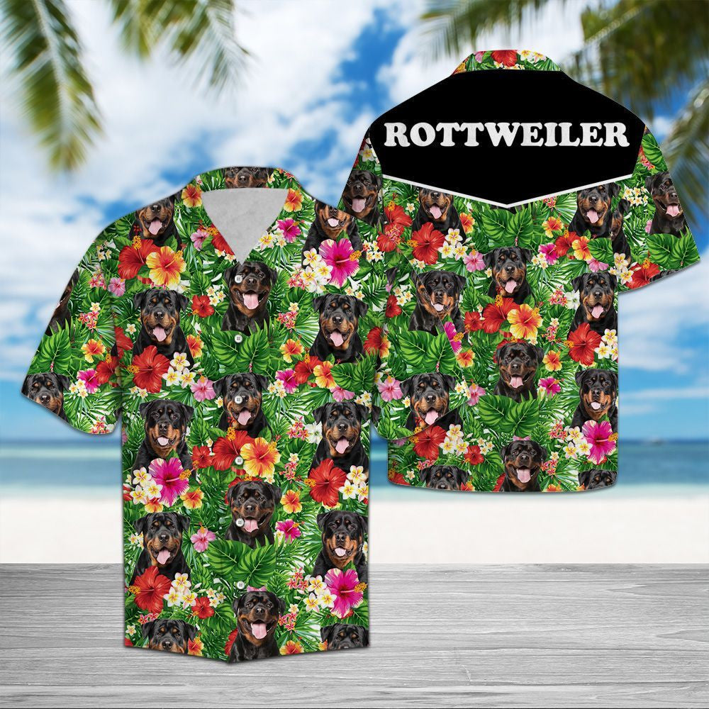 I bhFolach Rottweiler Agus Patrún Plandaí Tropacha Bláthanna Léine Haváís, Bronntanas Léine Haváís, Bronntanas Nollag